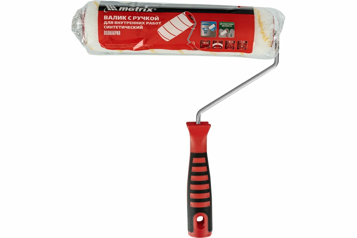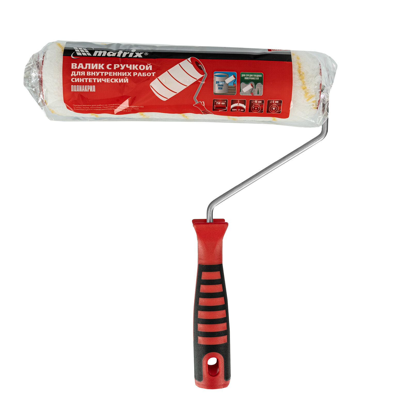Валик для внутр.работ синтетич. с двухком.руч., 250мм, ворс12мм, D48мм, Dруч.6мм, полиакрил// Matrix интересное: