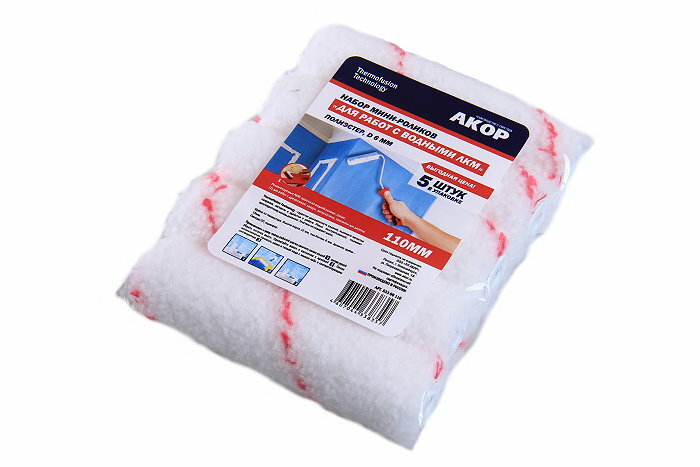 Купить Валик сменный мини набор 5ШТ П/Э водные краски 110ММ Д-6ММ ворс 15ММ 98732 акор