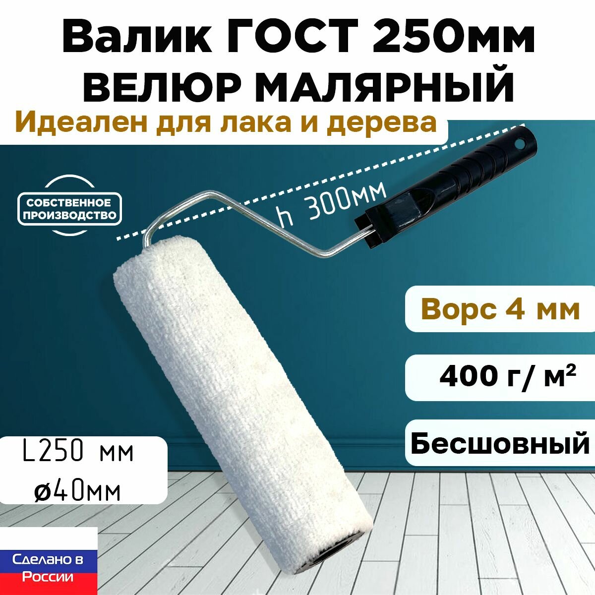 Валик ГОСТ с ручкой малярный велюр 100% 250*40 мм, ворс 4 мм, бесшовный, сменный мех, сменный ролик, белый, ЗСК интересное: