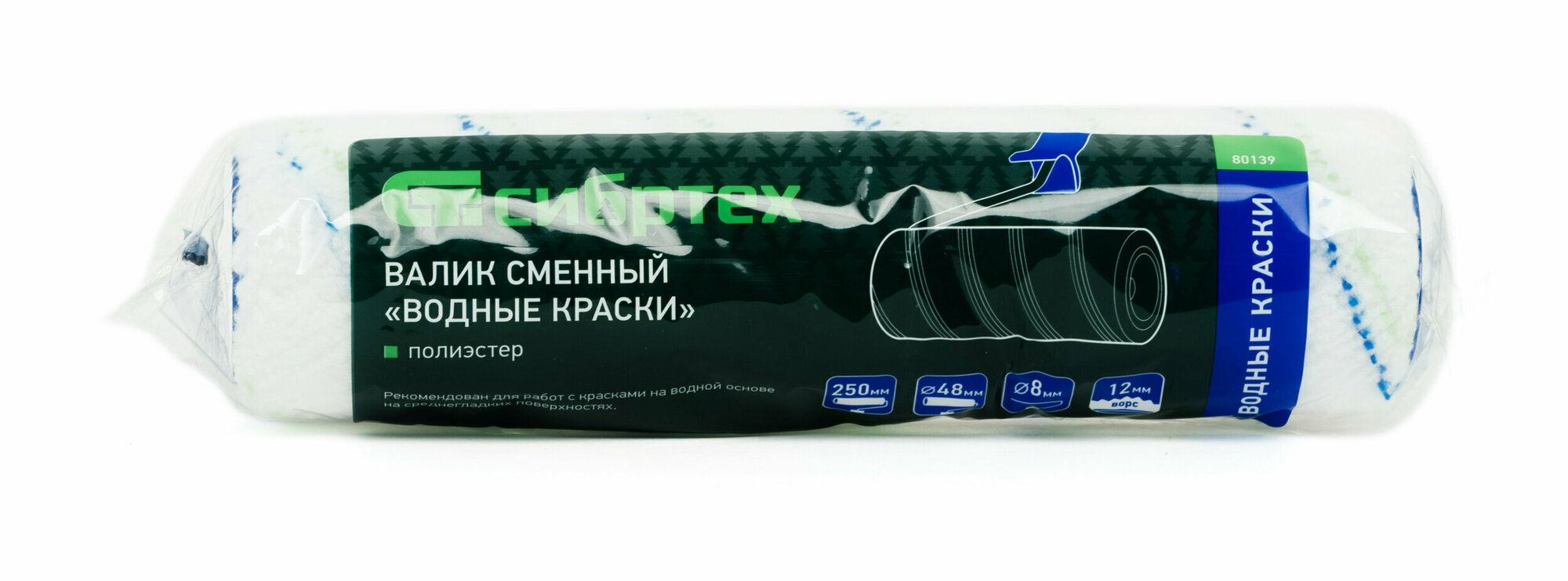 Валик сменный "Водные краски", 250 мм, ворс 12 мм, D 48 мм, D ручки 8 мм, полиэстер СибрТех [80139] интересное: