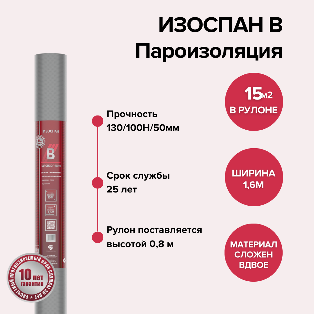 Пароизоляционная пленка Изоспан В 15 кв.м., 1,6*9,37м. (свернутый в 0.8м.) интересное: