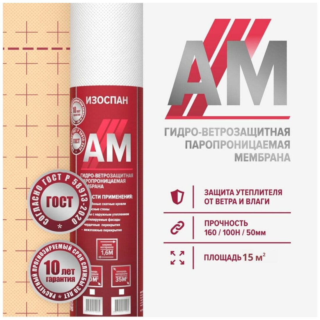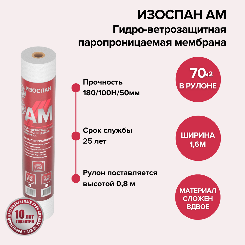 Изоспан АМ 15 м2 гидро-ветрозащитная паропраницаемая мембрана, трехслойная диффузионная гидроизоляция для кровли, стен и фасадов (свернутый в 0,8м.) интересное:
