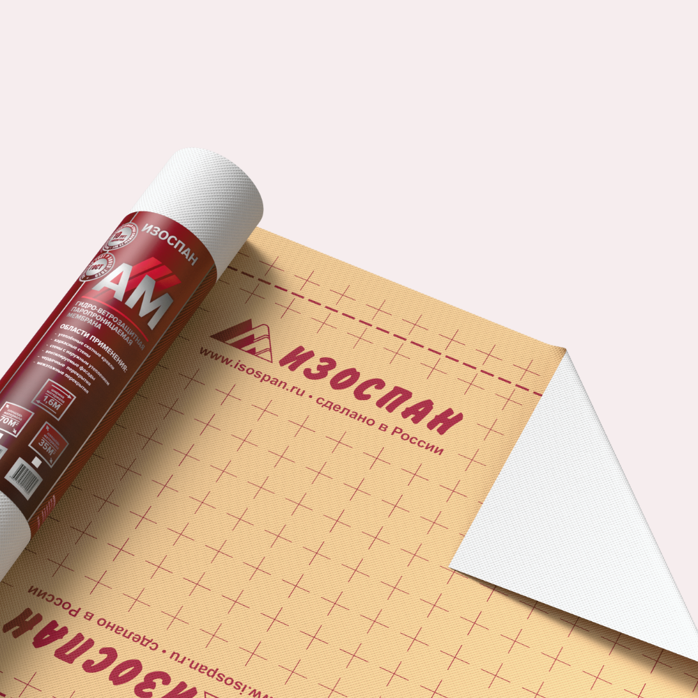 Купить Изоспан АМ 15 м2 гидро-ветрозащитная паропраницаемая мембрана, трехслойная диффузионная гидроизоляция для кровли, стен и фасадов (свернутый в 0,8м.)