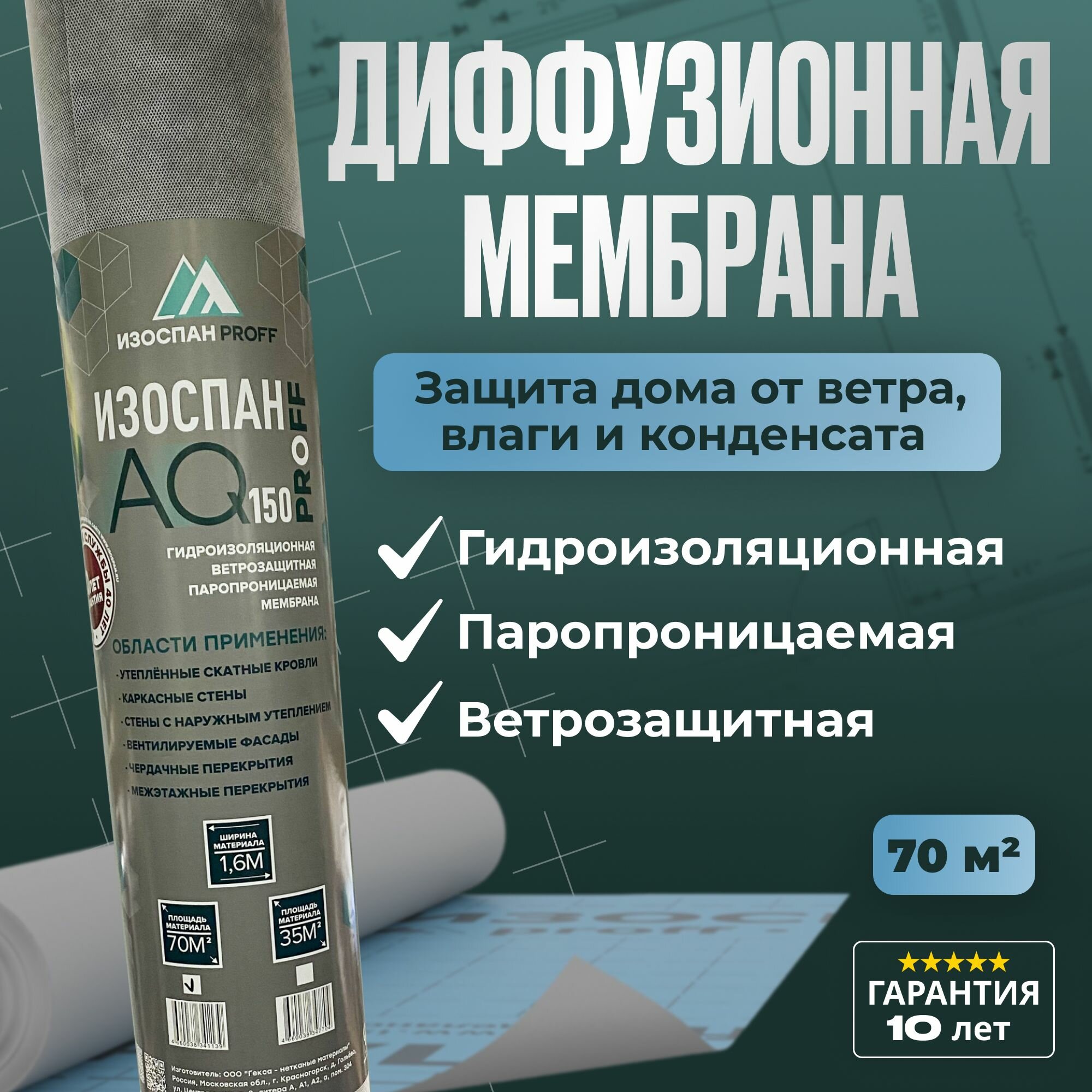 Изоспан AQ proff 150 - 70 м2 диффузионная мембрана, усиленная гидро-ветрозащитная трехслойная для кровли и стен интересное: