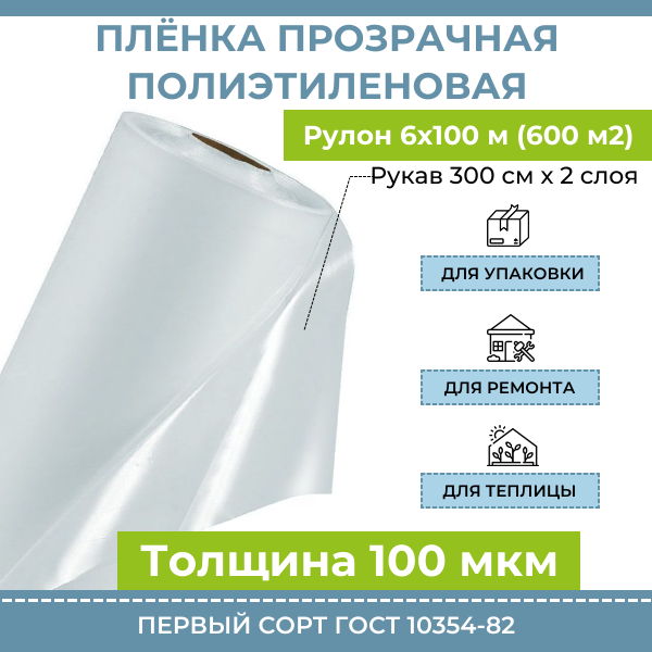 СохранитьПленка полиэтиленовая прозрачная 100 мкм "Оптима", рулон 6х100 м (600 м2, рукав 44 кг) строительная укрывная для упаковки, ремонта, парника и теплицы интересное: