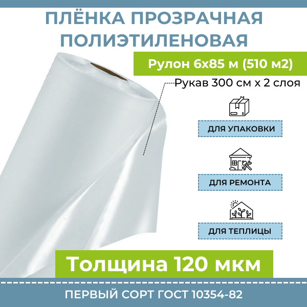 СохранитьПленка полиэтиленовая прозрачная 120 мкм "Оптима", рулон 6х85 м (510 м2, рукав 44 кг) строительная укрывная для упаковки, ремонта, парника и теплицы интересное: