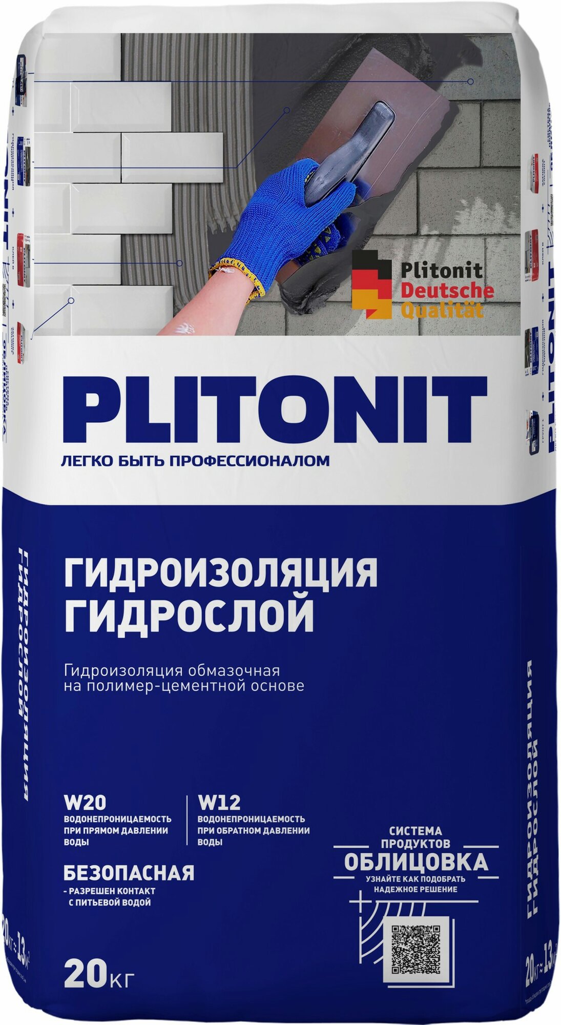 Гидроизоляция PLITONIT ГидроСлой, жесткая обмазочная, 20 кг интересное: