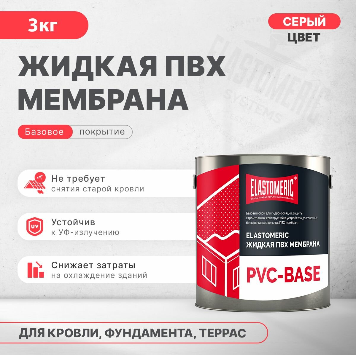 Купить ПВХ мембрана жидкая Elastomeric PVC-Base, 3кг.