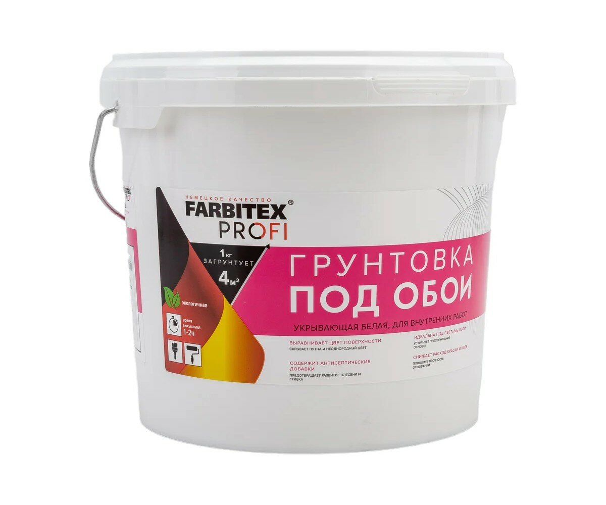 Акриловая укрывающая грунтовка под обои Farbitex PROF интересное: