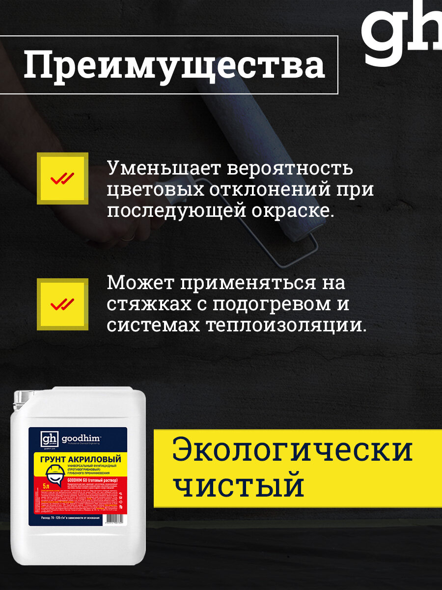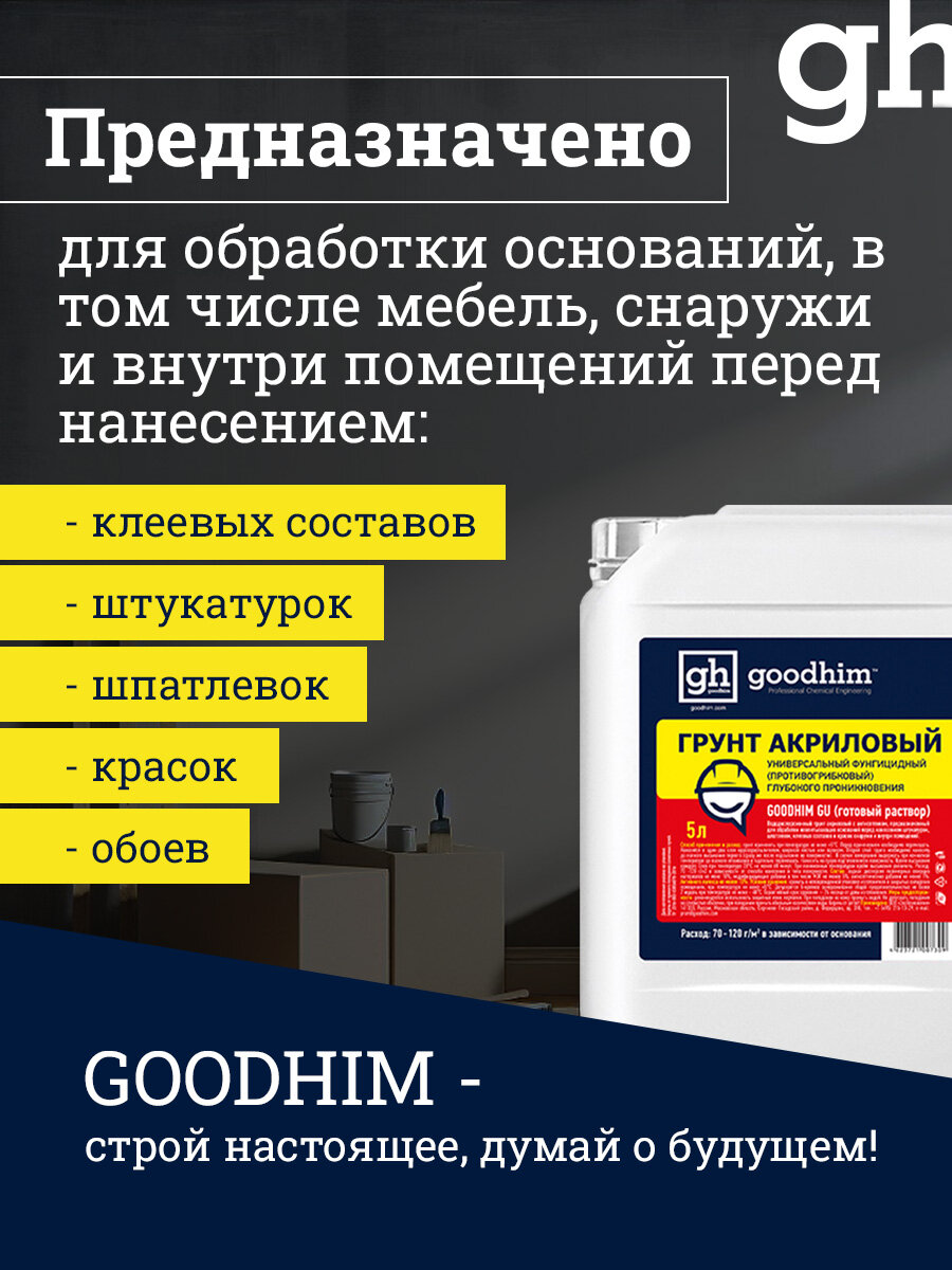 Грунтовка для стен универсальная с антисептиком, GOODHIM GU 5л 73091 интересное: