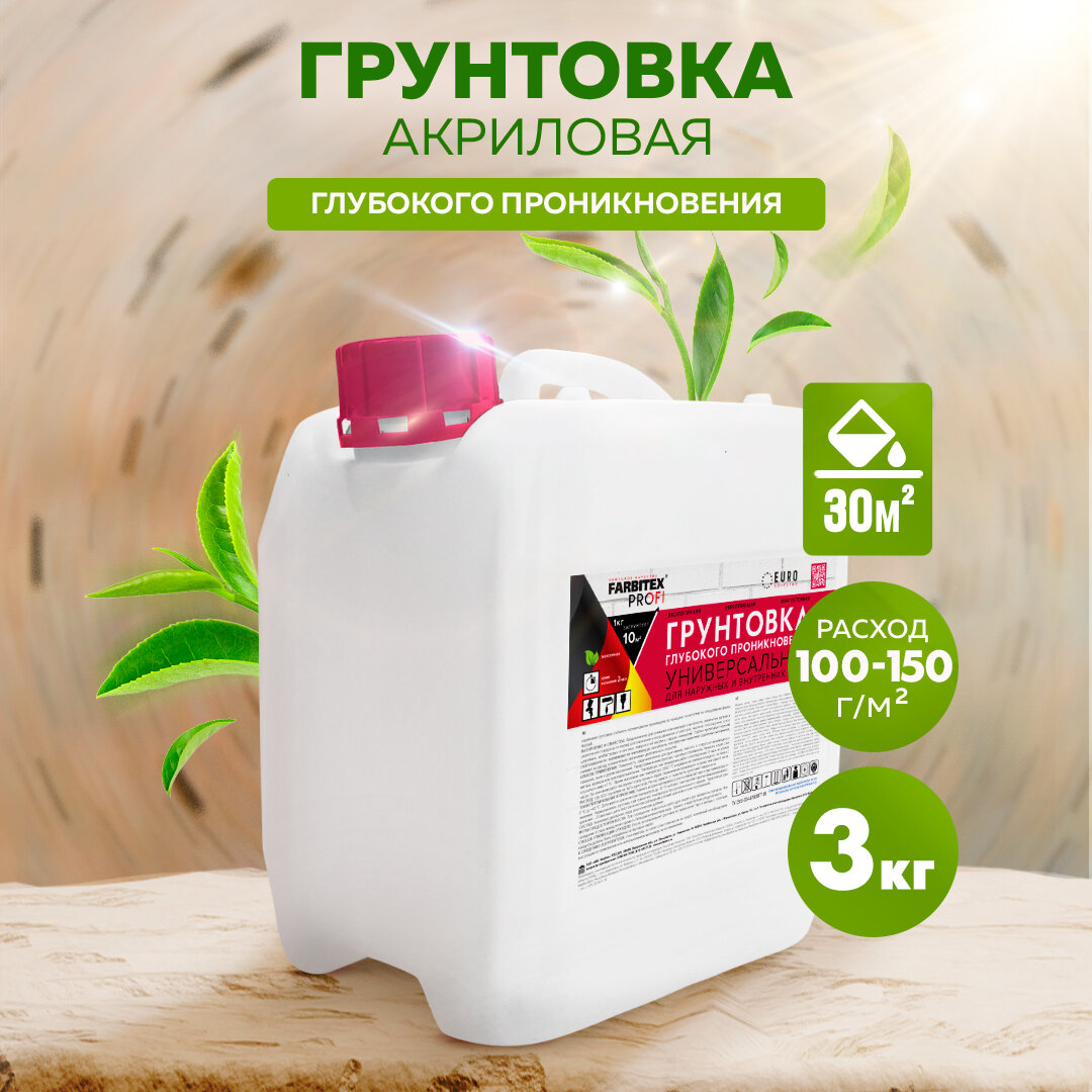 Грунтовка глубокого проникновения акриловая FARBITEX профи 3 кг интересное: