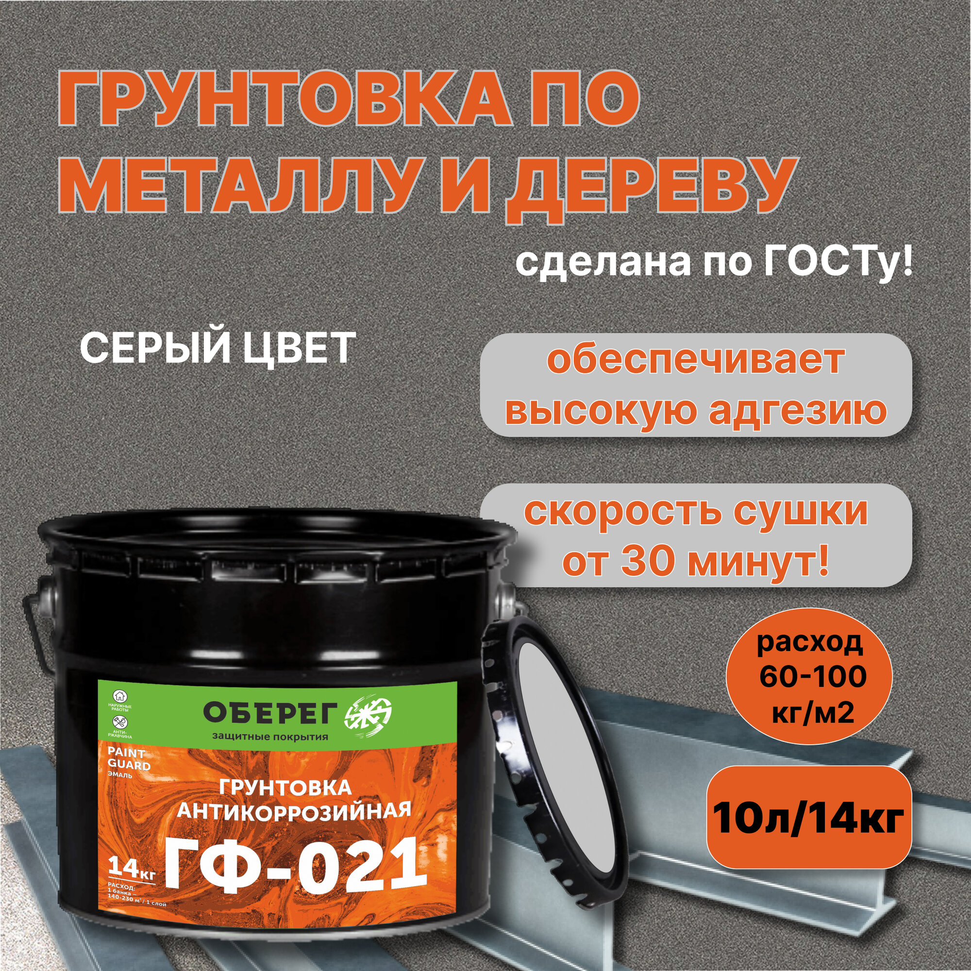 Грунтовка антикоррозийная ГОСТ ГФ-021 Серая PaintGuard - 10л/14кг интересное: