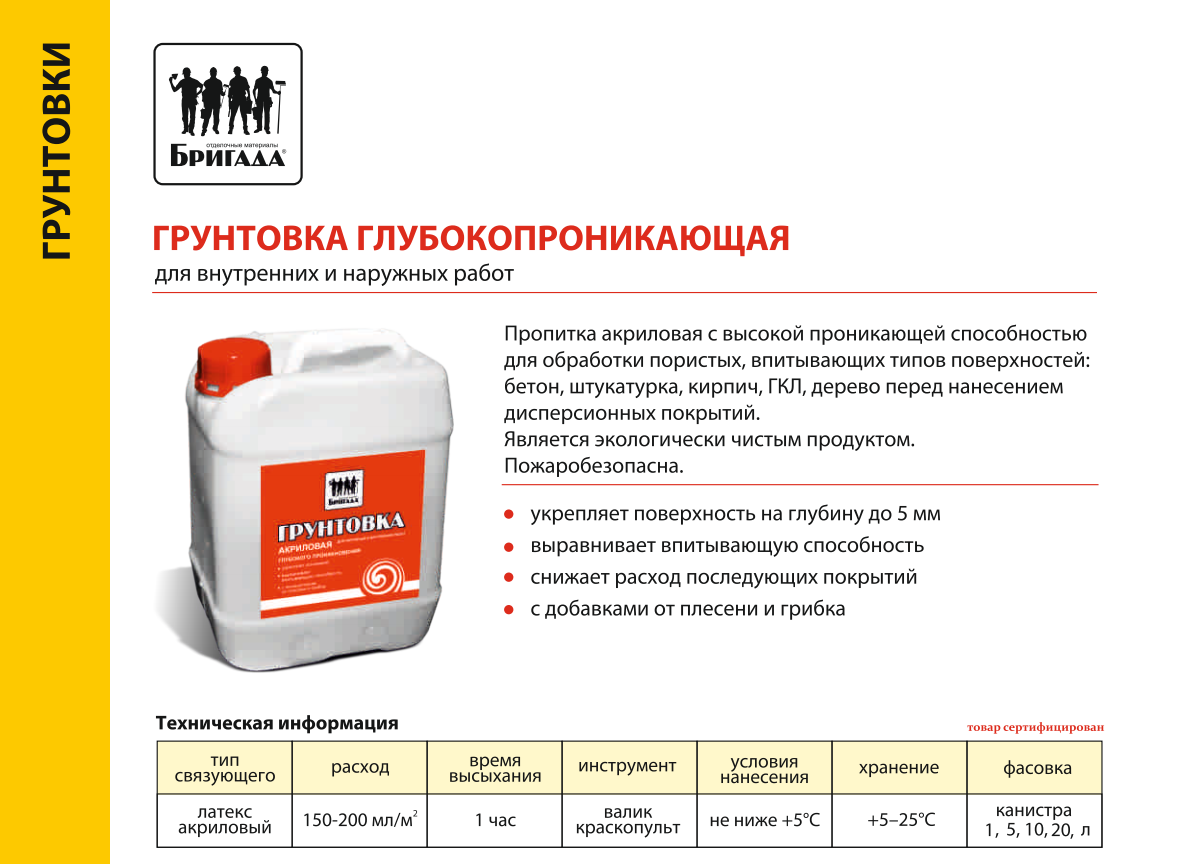 Грунтовка акриловая глубокого проникновения ВДАК «Бригада» универсальная (канистра 3л) интересное: