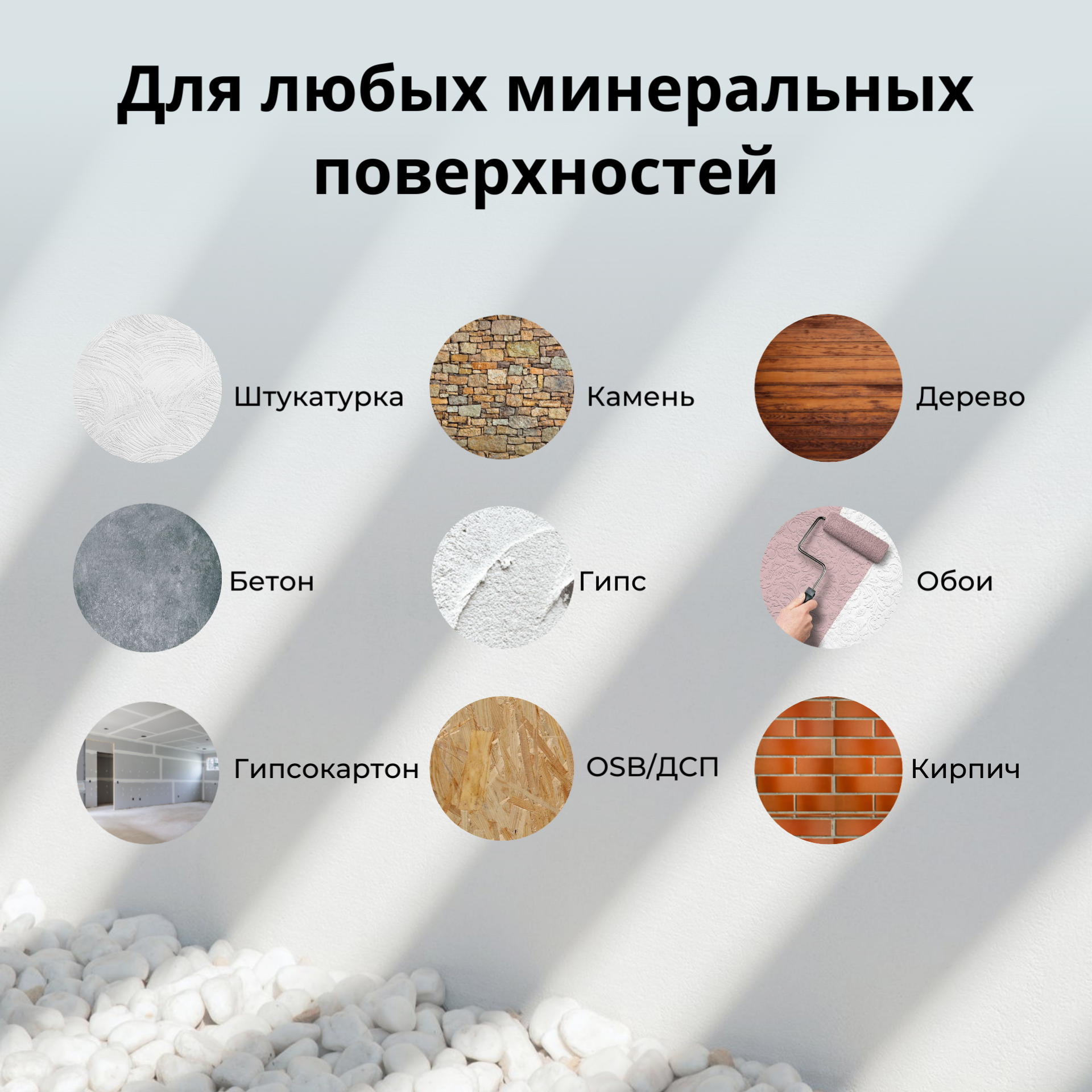 | Назначение | для пола / для потолка / для стен / для фасада / под обои / под плитку / под покраску |