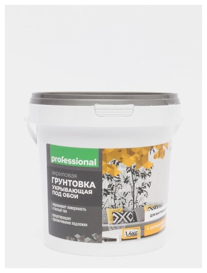 Купить Грунтовка акриловая для стен под обои PROFESSIONAL укрывающая белая с антисептиком без запаха для внутренних работ 1,4кг