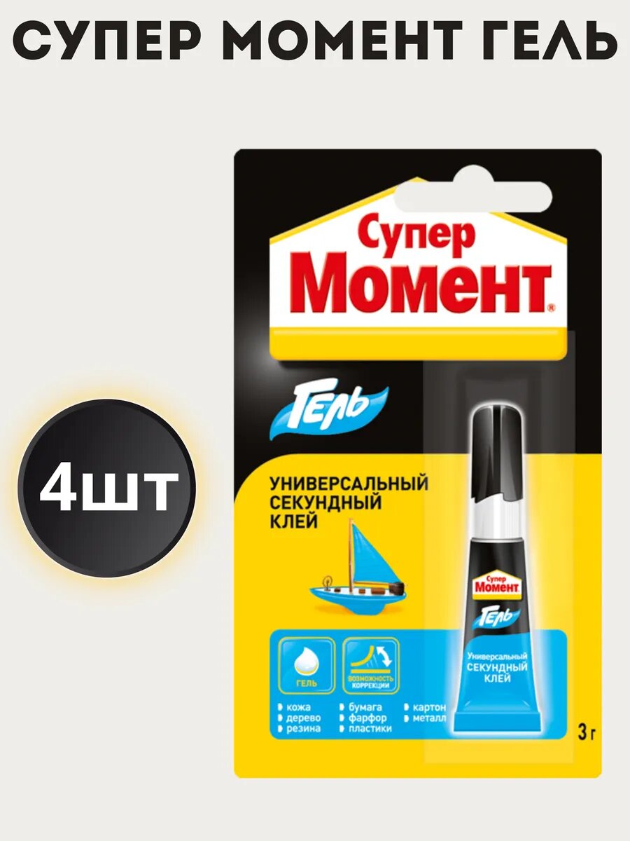 Купить Комплект 4 штук, Клей момент Супер Гель 3 г, (622917)