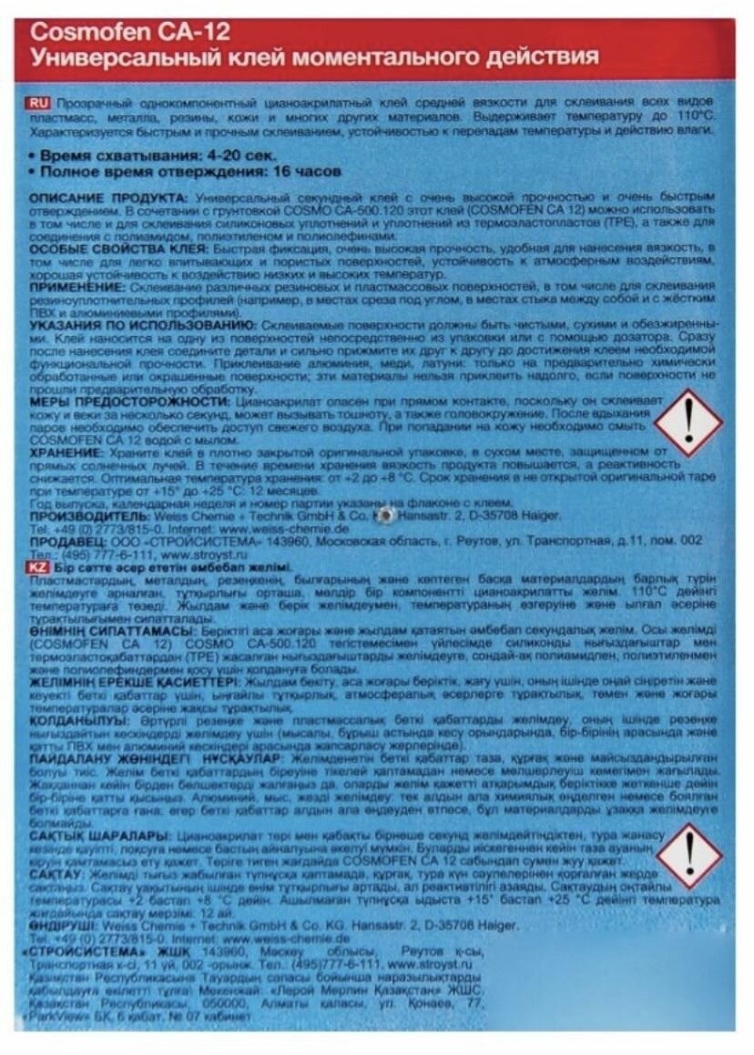 Ниже Вы можете прочитать отзывы на Cosmofen/Супер клей Cosmofen CA 12 секундный универсальный, ознакомится с подробными характеристиками, посмотреть интересные обзоры и фотографии на Cosmofen/Супер клей Cosmofen CA 12 секундный универсальный.