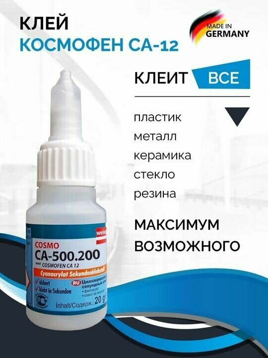 Клей космофен са 12. Клей cosmofen ca 12. 1 шт. , прозрачный, 20 г. Клей строительный. Супер клей. Клей секундный. Клей для пластика. Германия. Оригинал.