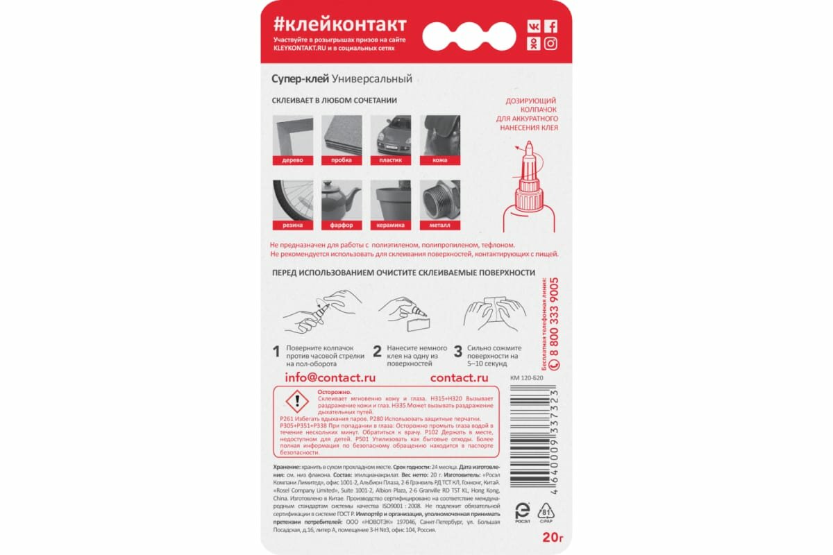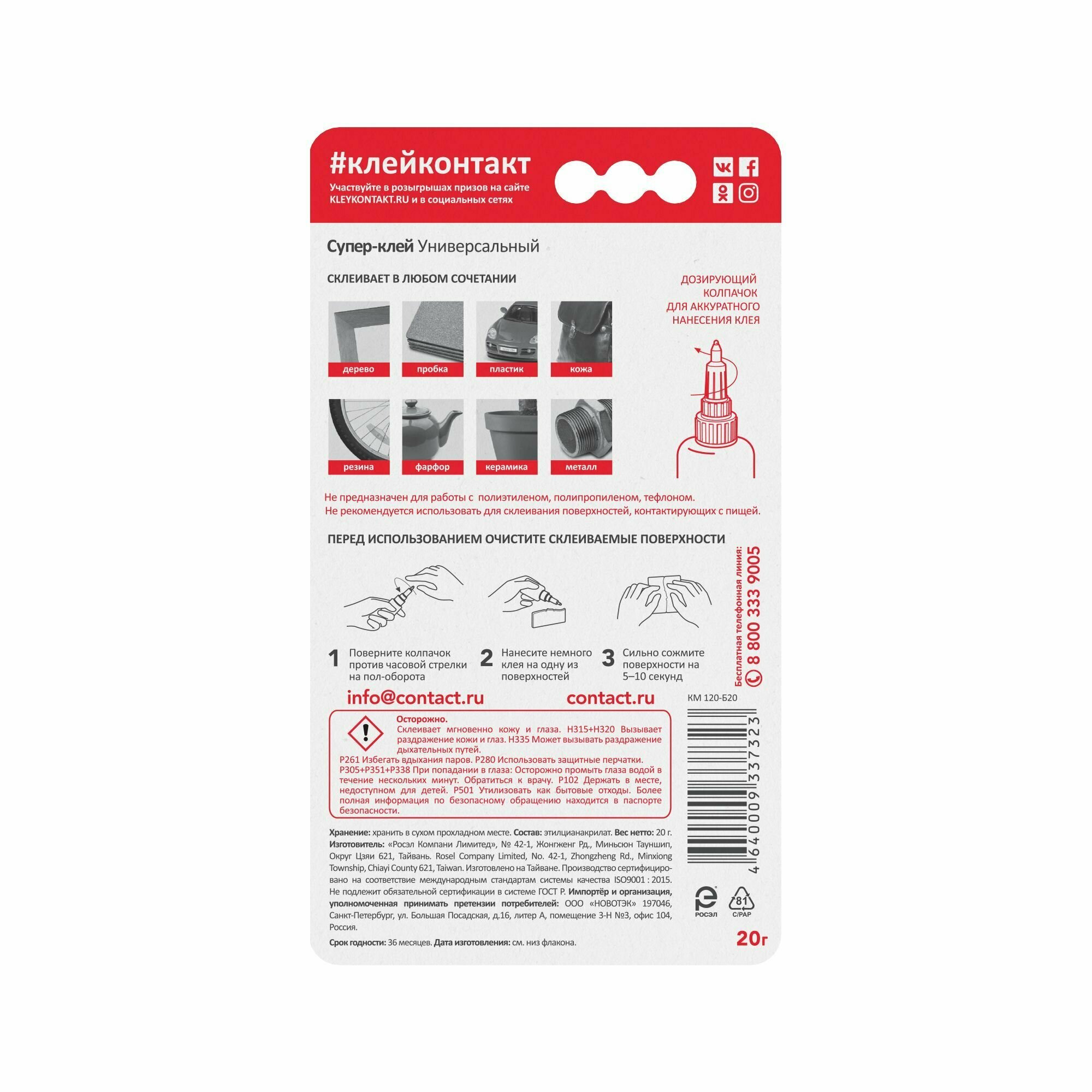 Клей универсальный Контакт Супер-клей 20 г, блистер, КМ 120-Б20