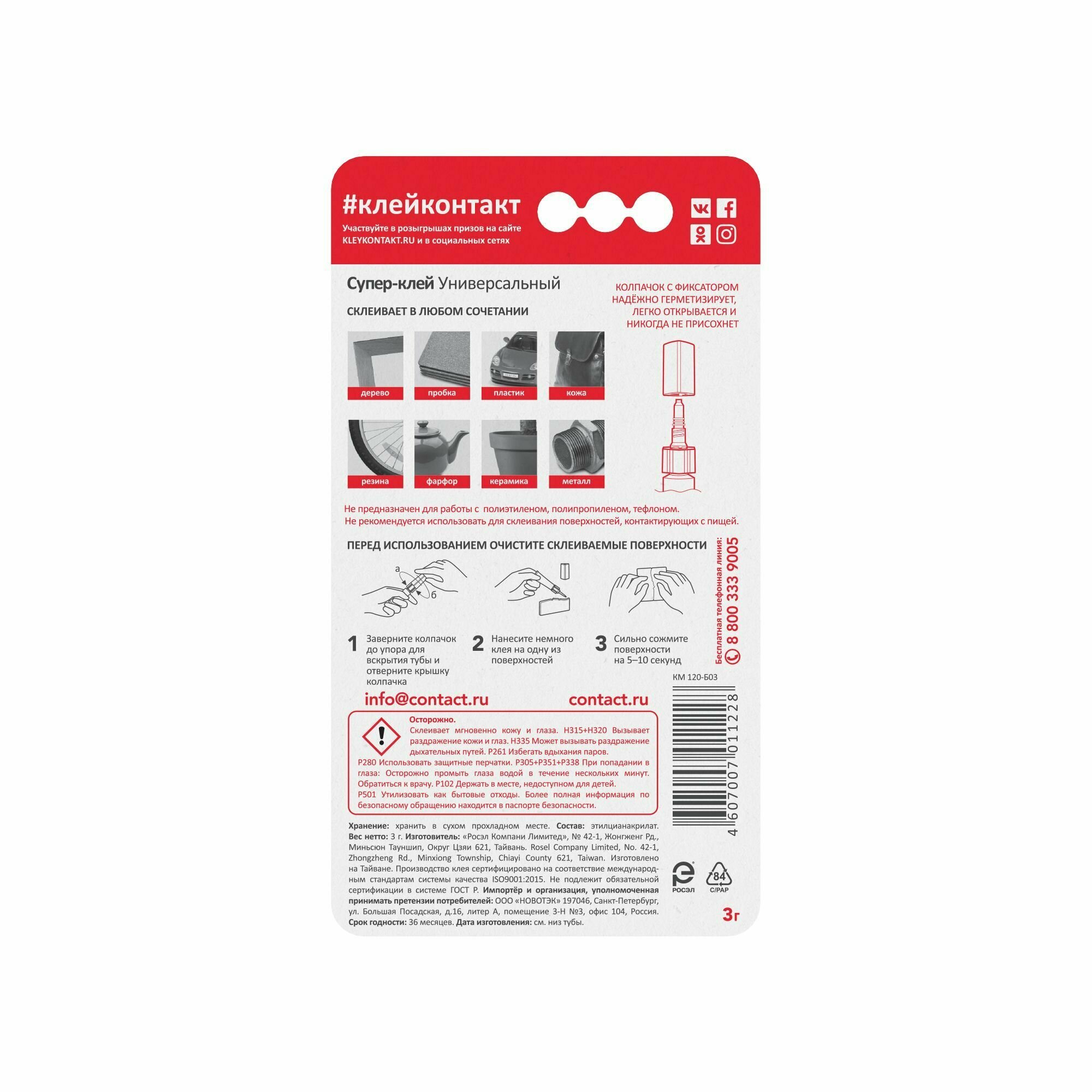 Супер-клей универсальный «Контакт», 3 г