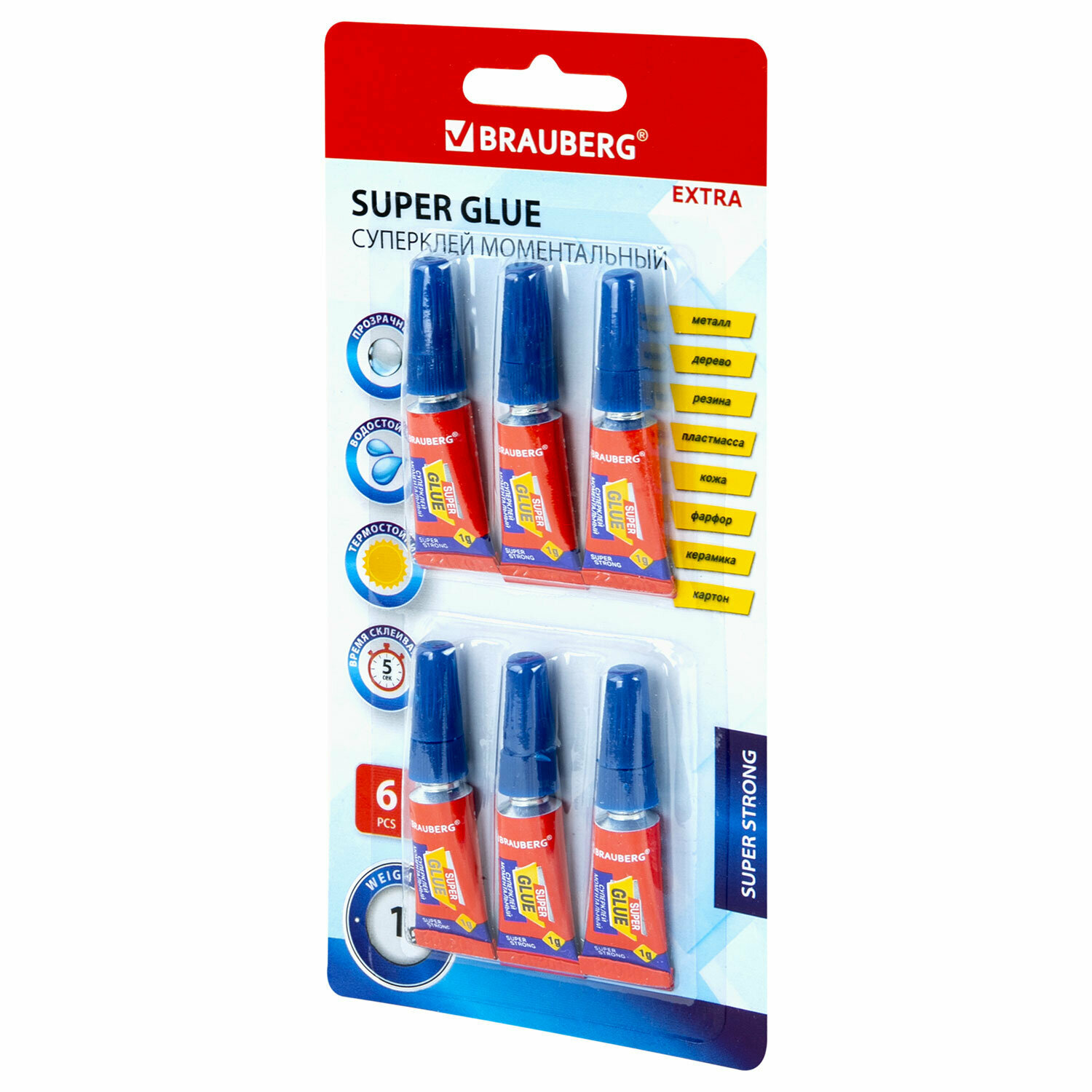 Купить Клей момент прозрачный, супер клей экономичный Brauberg Extra, 1 г суперпрочный, Комплект 6 Штук, 608109