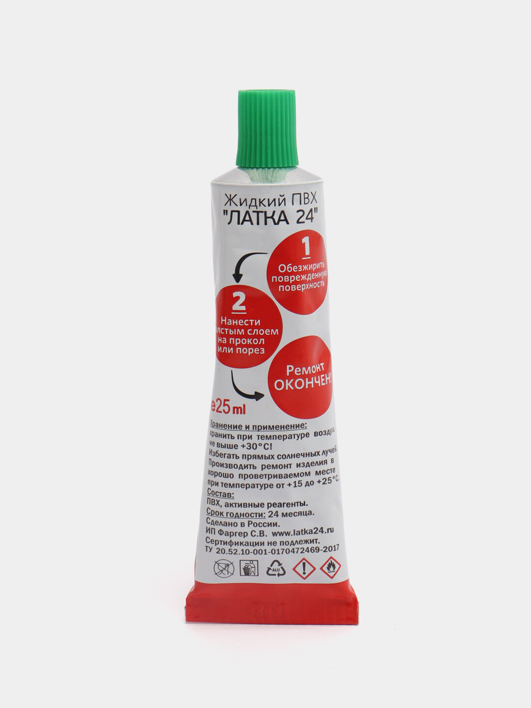 Жидкая Латка 24, заплатка, клей водостойкий 25г для ремонта изделий из ПВХ, лодок, матрасов, бассейнов, цвет белый