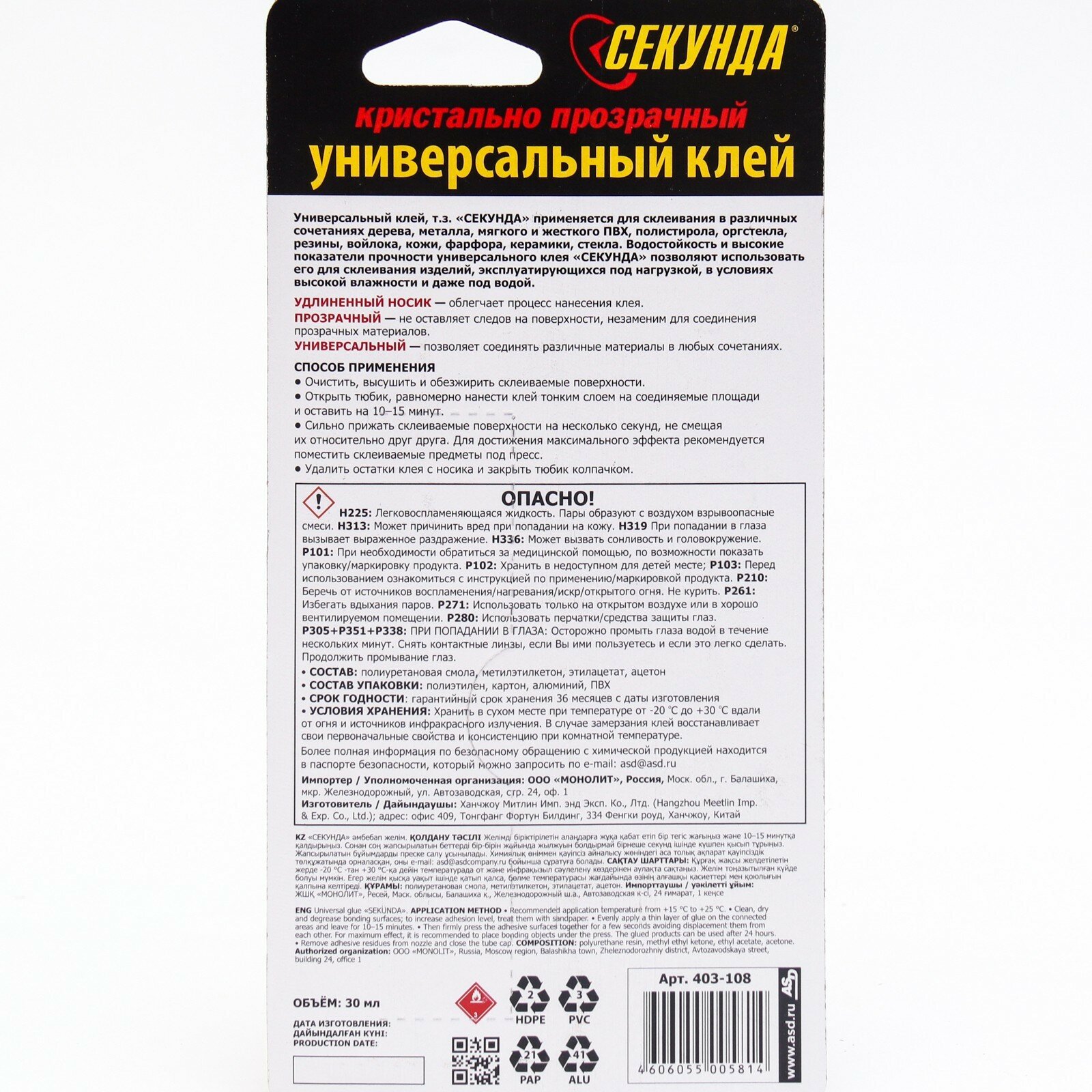Универсальный клей «секунда» 30 мл, кристально-прозрачный, интересное: