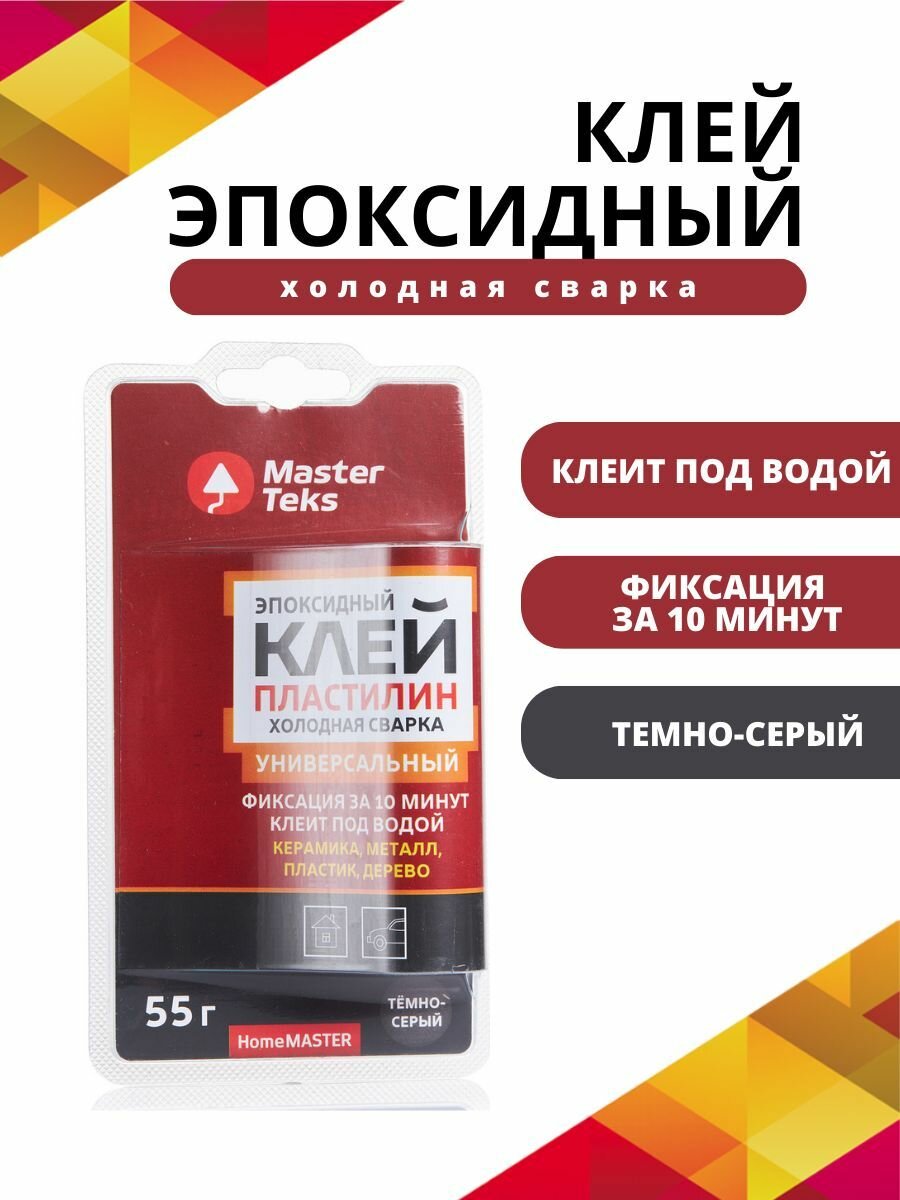 Купить Клей-пластилин холодная сварка MasterTeks HomeMaster эпоксидный универсальный темно-серый 55 грамм
