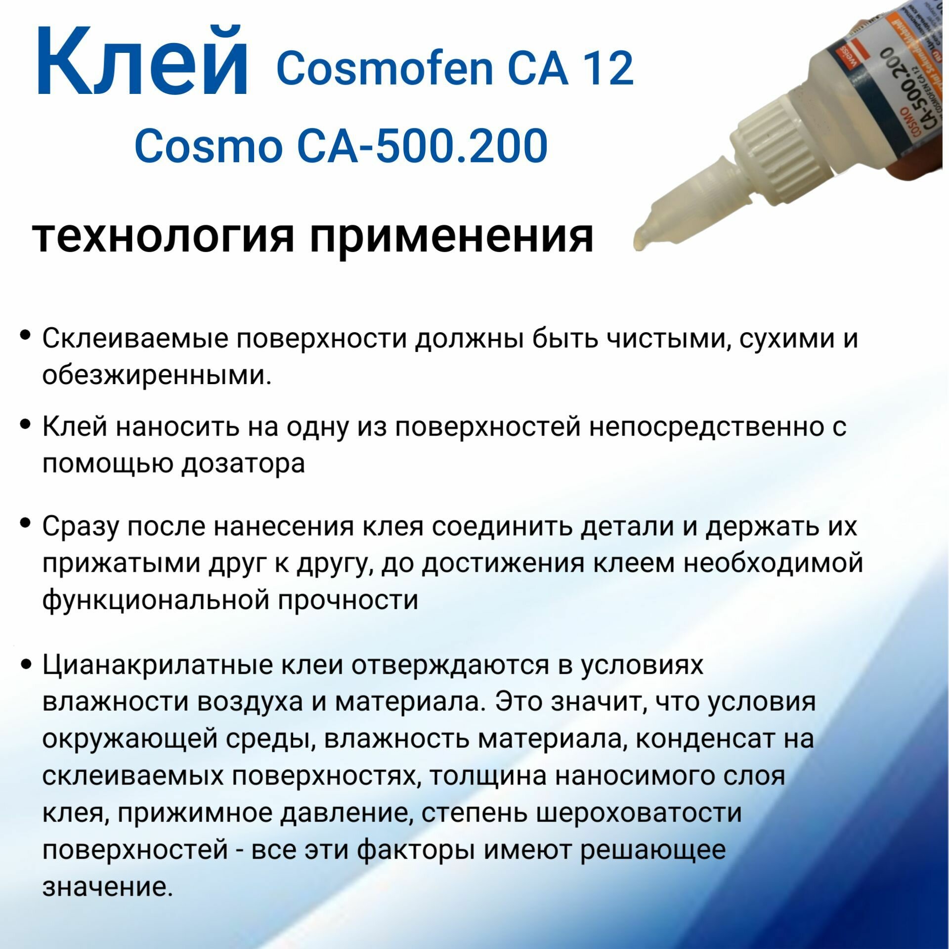 Клей секундный цианоакрилатный Cosmo CA-500.200 (Cosmofen CA-12), 50 г