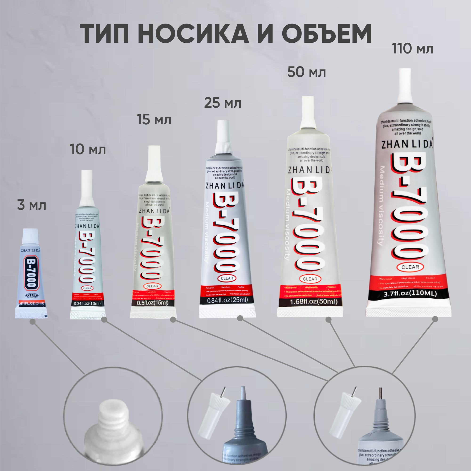 Прозрачный клей Zhanlida B-7000 (B7000, В7000, B-7000) для ремонта телефонов и страз, 25 мл. интересное:
