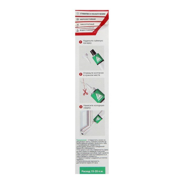 | Свойства | водостойкий / моментальный / морозостойкий / прозрачный / термостойкий / химическая стойкость |