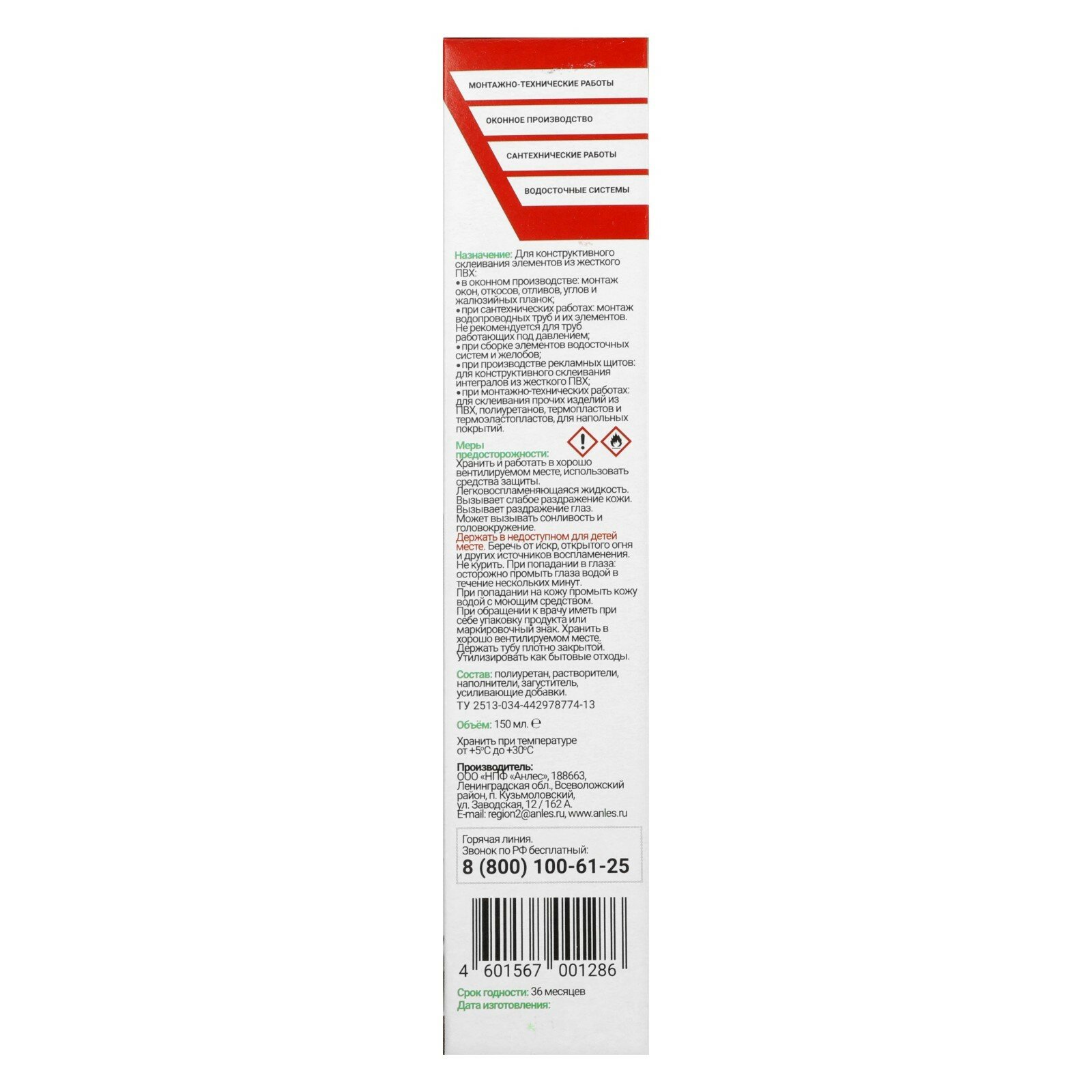 Анлес Клей для ПВХ PVC FIX, белый 150мл в индивид.упаковке с носиком 70128