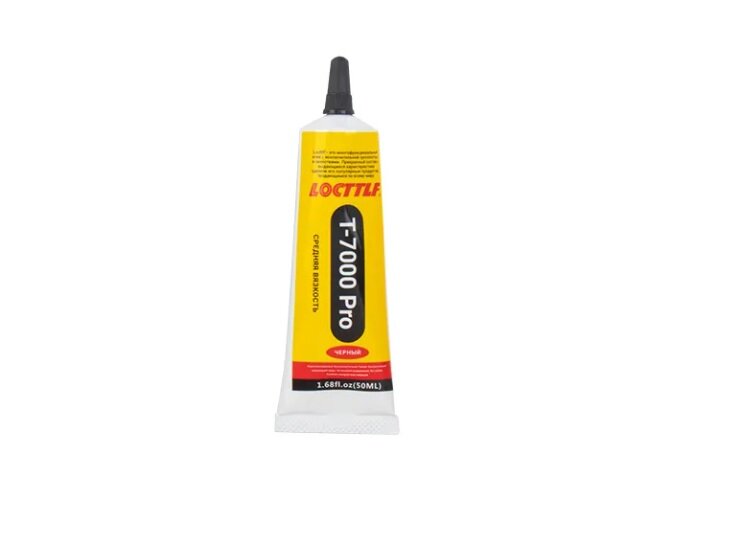 | Дополнительная информация | Однокомпонентный клей T7000 ( T 7000 ) черного цвета служит отличным инструментом при ремонте смартфонов и сотовых телефонов. Клей T-7000 часто применяется для склеивания тачскринов, а также дисплейных модулей и корпусов. Также, клей T 7000 хорошо подходит для: склеивания металла, стекла, полиэтилена, полипропилена, полихлорвинила, АБС-пластика, нейлона, резины, древесины, кожи, бумаги, волокнистых, пористых и плёночных материалов, бижутерии и ювелирных изделий. Время схватывания составляет 10–15 минут, а на полное высыхание необходимо подождать 24 часа. |