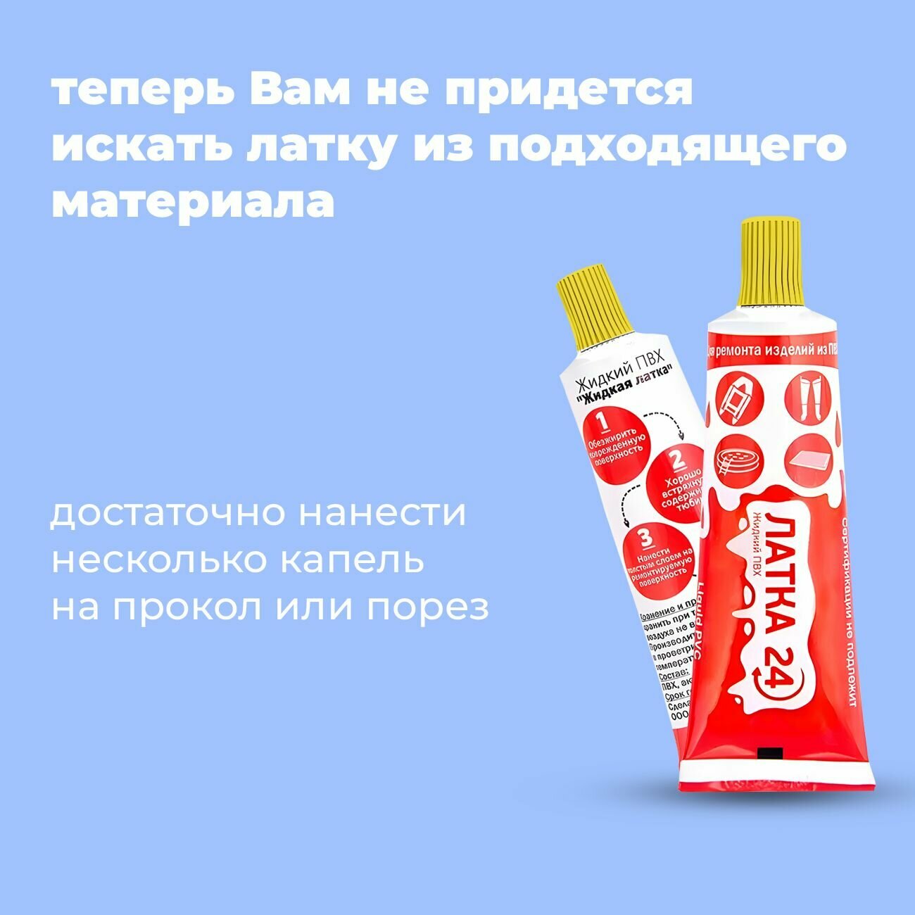 Жидкая Латка 24, заплатка, клей водостойкий 25г для ремонта изделий из ПВХ, лодок, матрасов, бассейнов, цвет красный