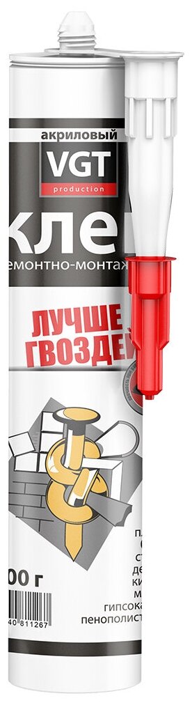 Клей ремонтно-монтажный универсальный VGT Лучше Гвоздей прозрачный, картридж (0,28кг) интересное: