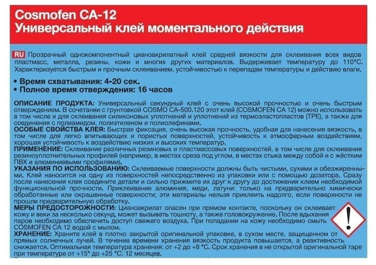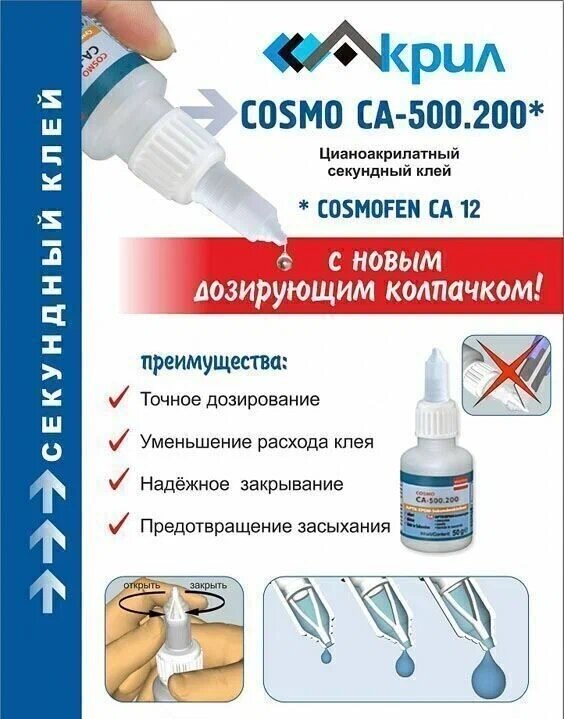 Супер-клей Cosmofen CA-12 20 г интересное: