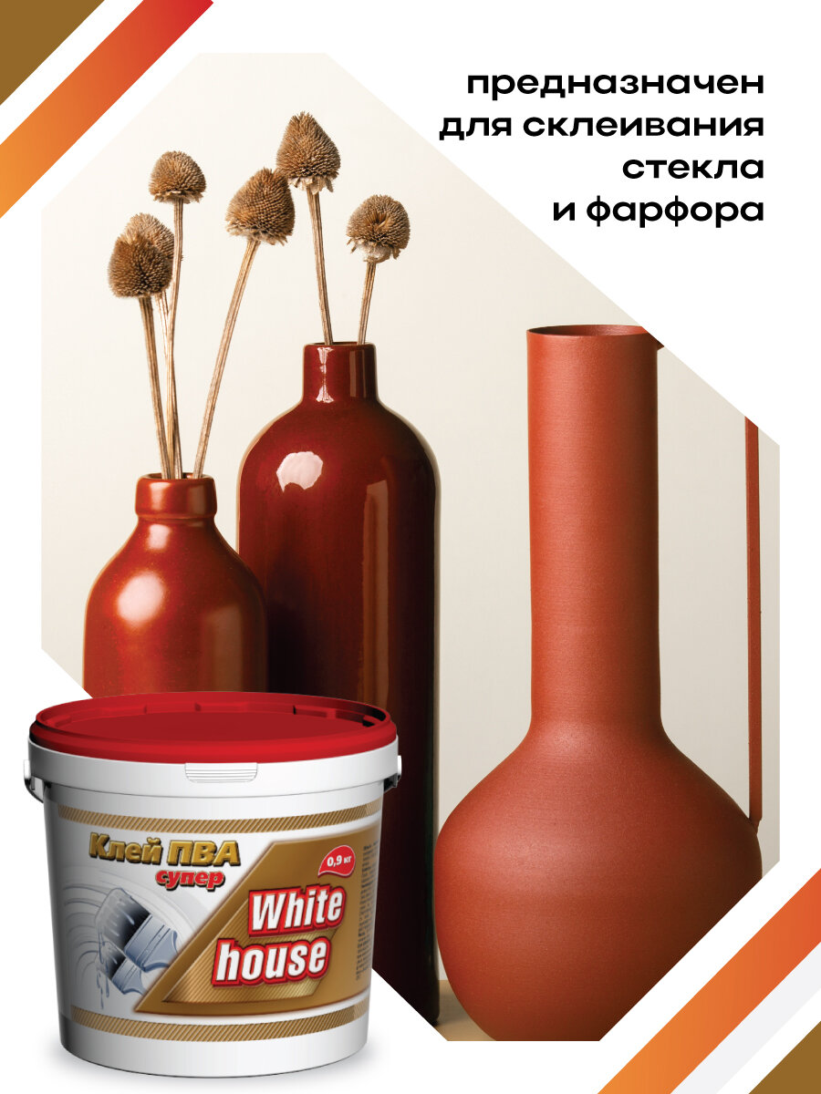 Клей ПВА "Супер" для особо прочного склеивания, White House, полупрозрачный, 0.9 кг