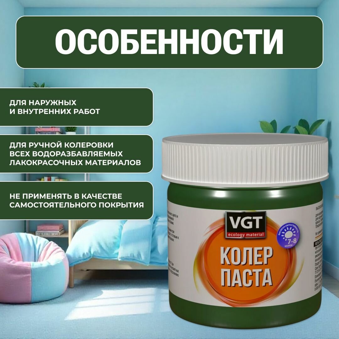 Паста колеровочная концентрированная для водоразбавляемых лакокрасочных материалов VGT (0,10кг) ярко-зеленая