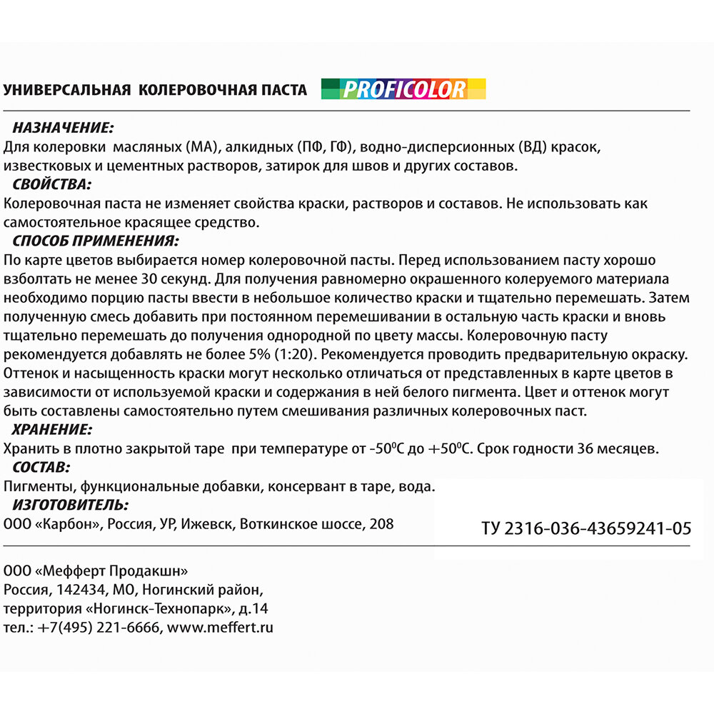 Колеровочная паста Profilux Proficolor универсальный (стандартные цвета) 21 черный 0.1 л