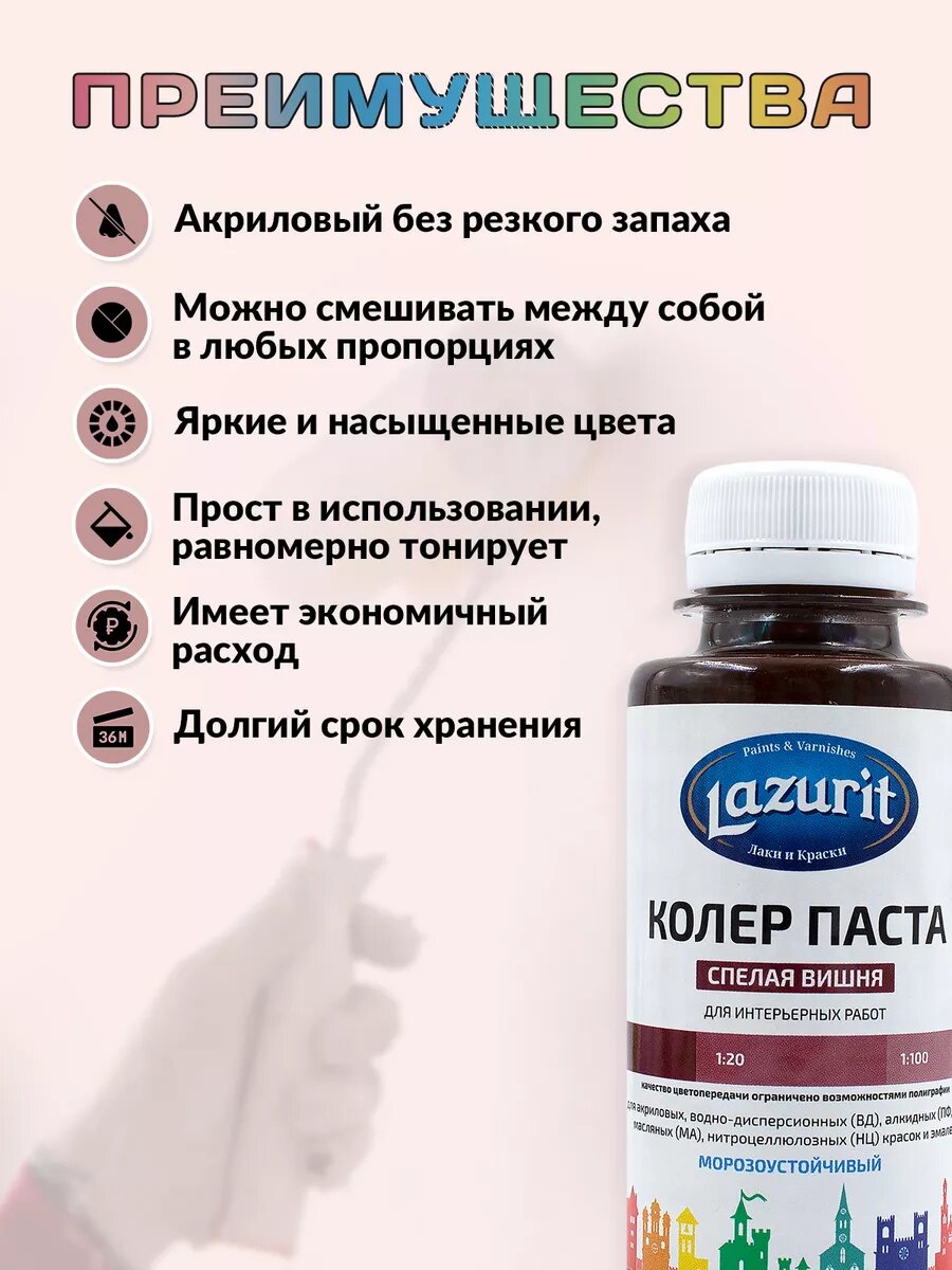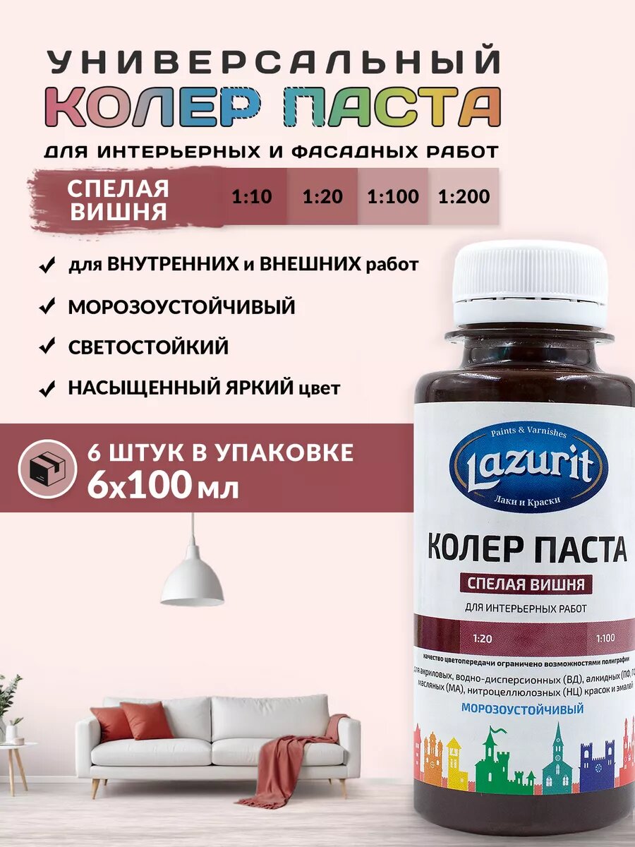 Купить Колер-паста LAZURIT спелая вишня 100 мл/6шт