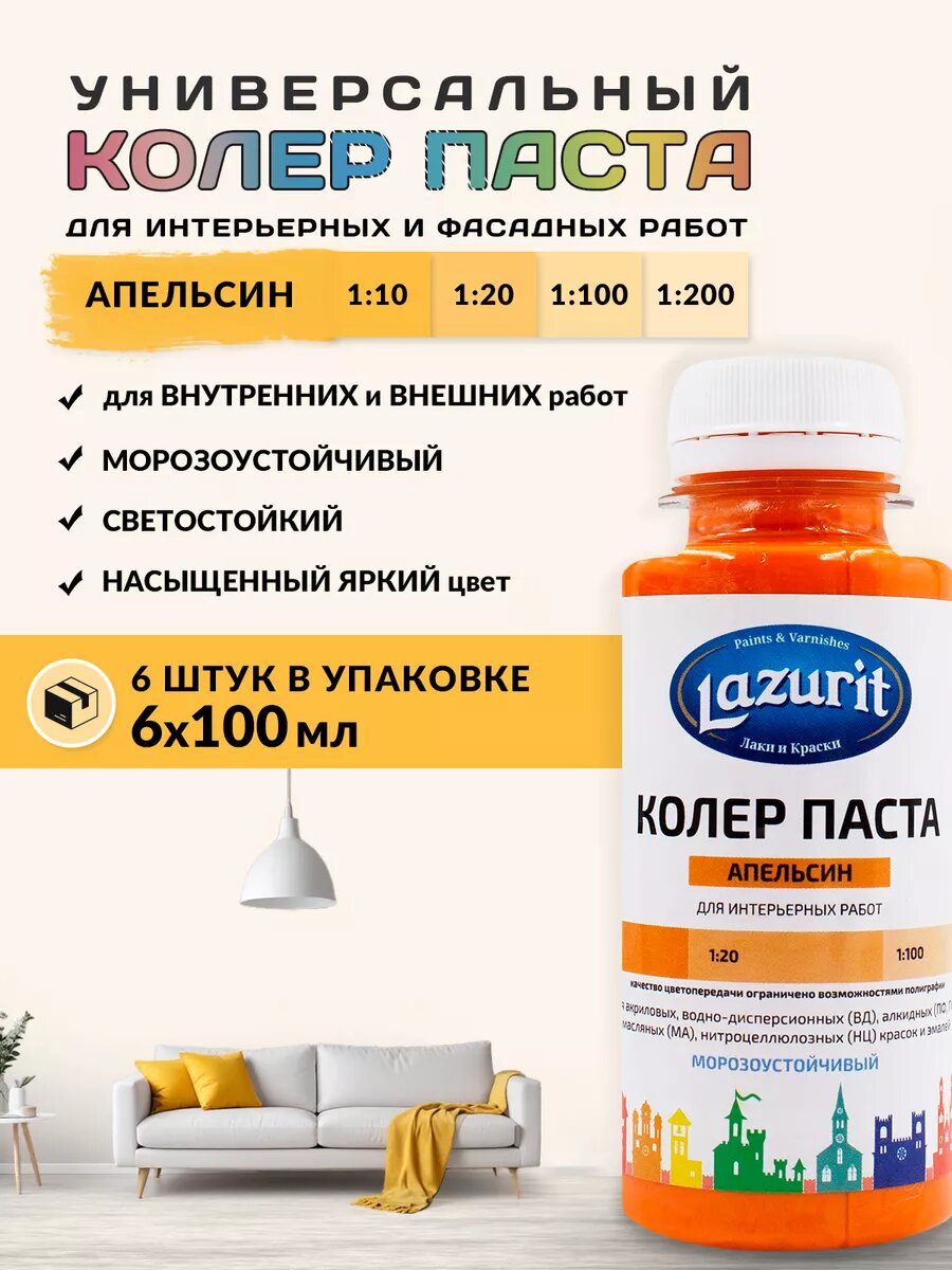 Купить Колер-паста LAZURIT апельсин 100 мл/6шт