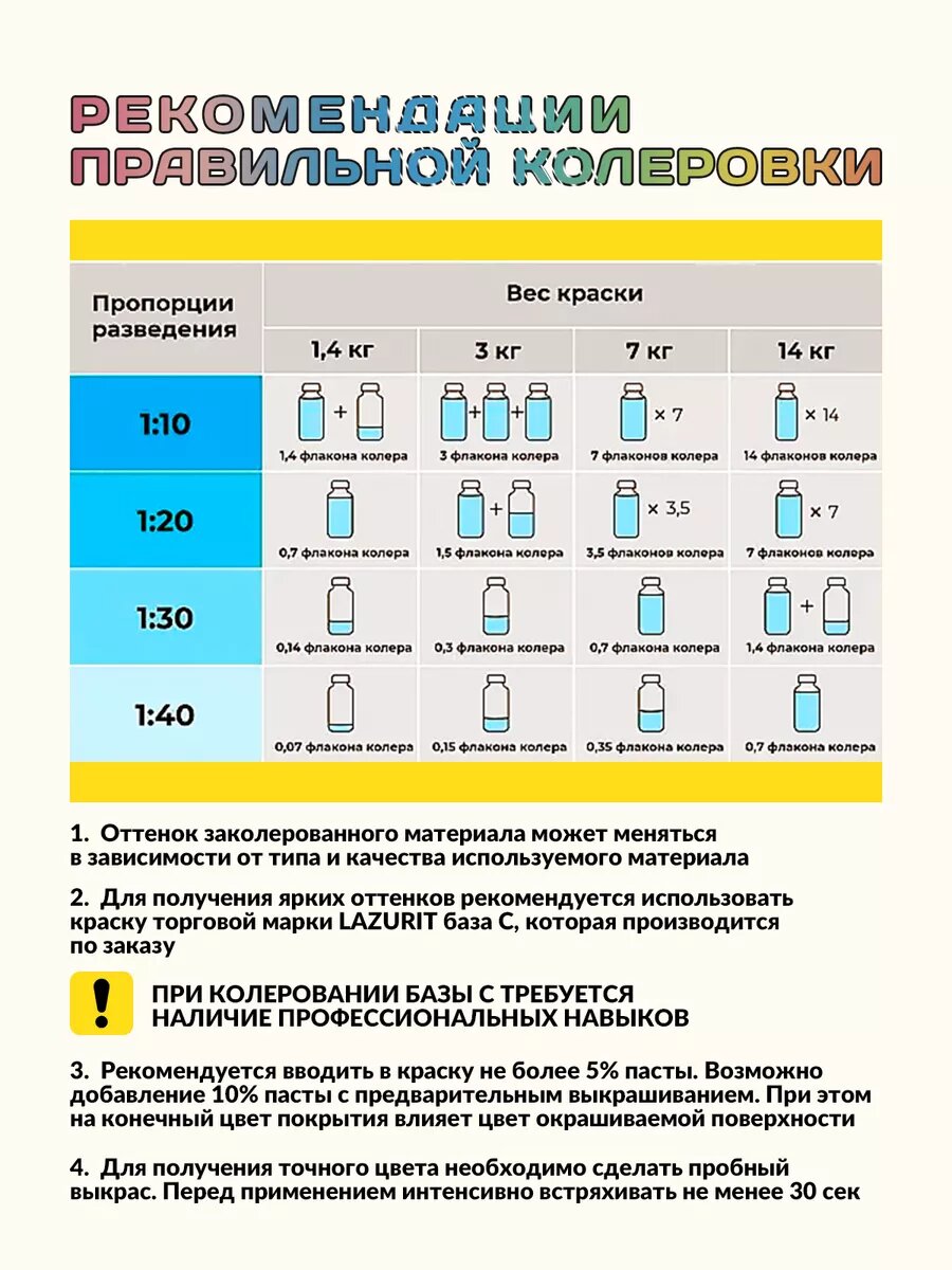 | Вид колера | колеровочная паста |