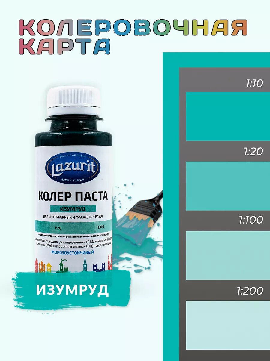 Колер-паста LAZURIT изумруд 100 мл/2шт интересное: