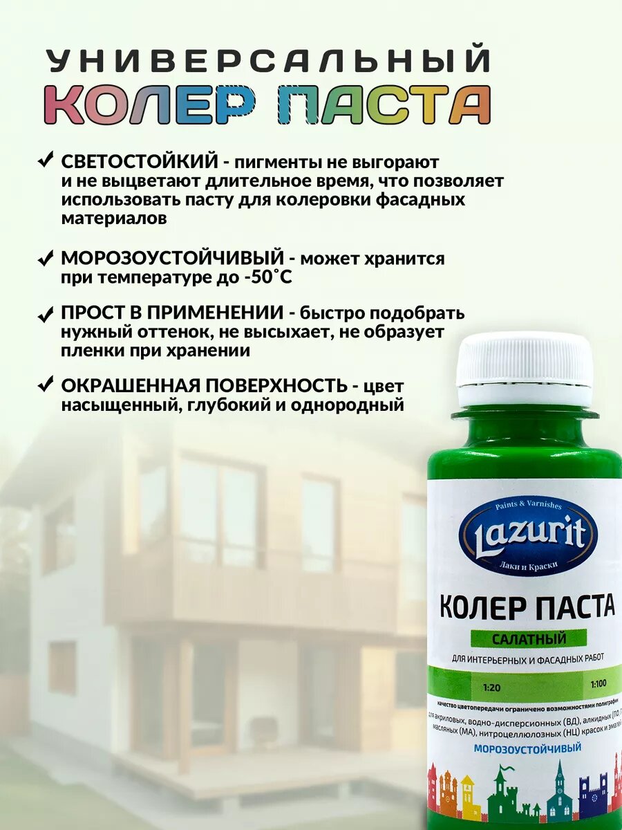 Колер-паста LAZURIT салатный 100 мл/1шт