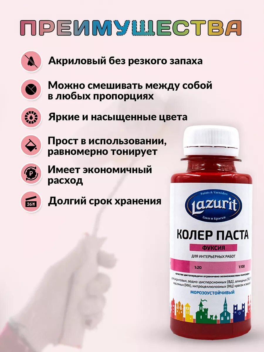 Колер-паста LAZURIT фуксия 100 мл/6шт интересное: