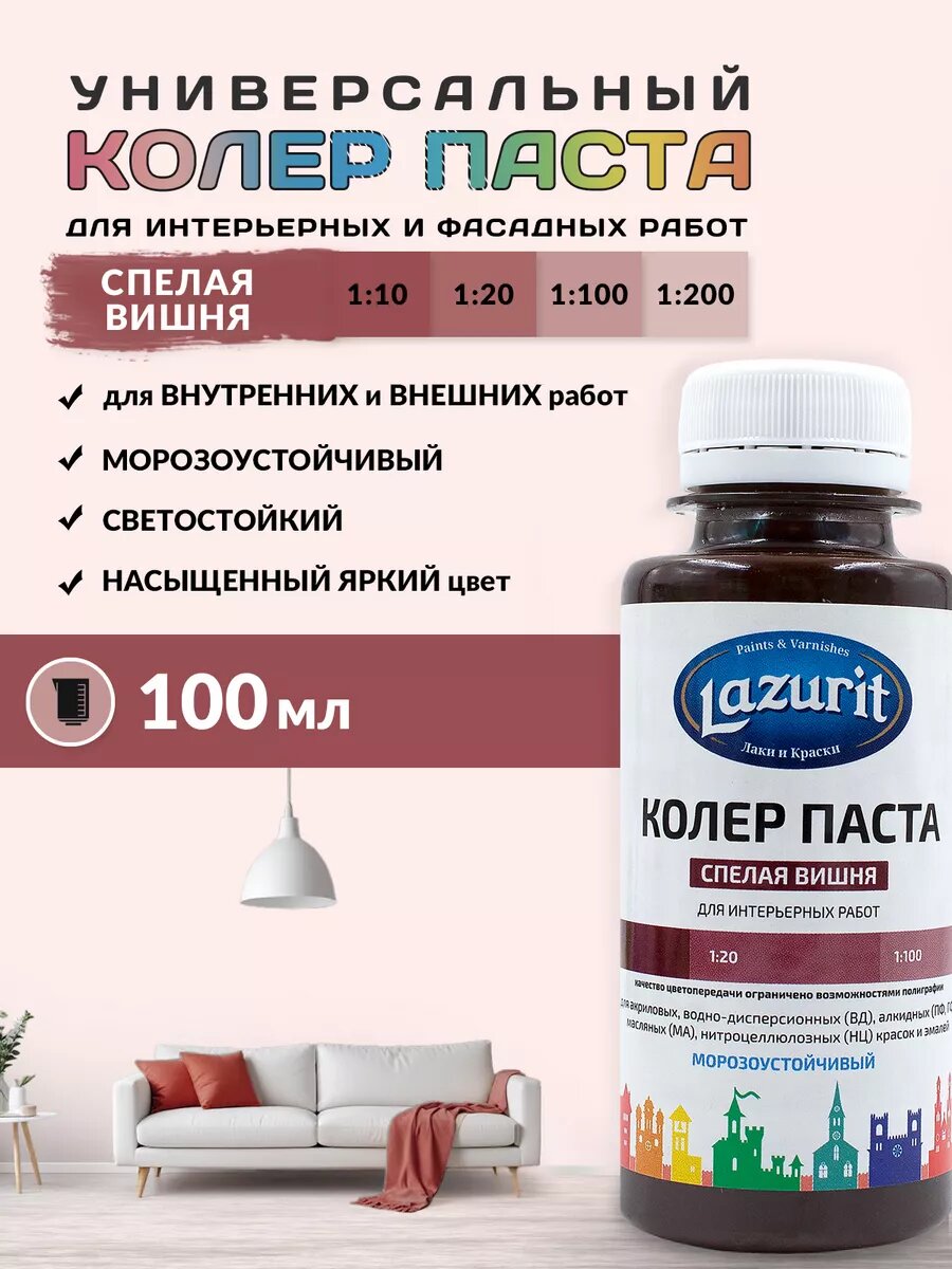 Купить Колер-паста LAZURIT спелая вишня 100 мл/1шт