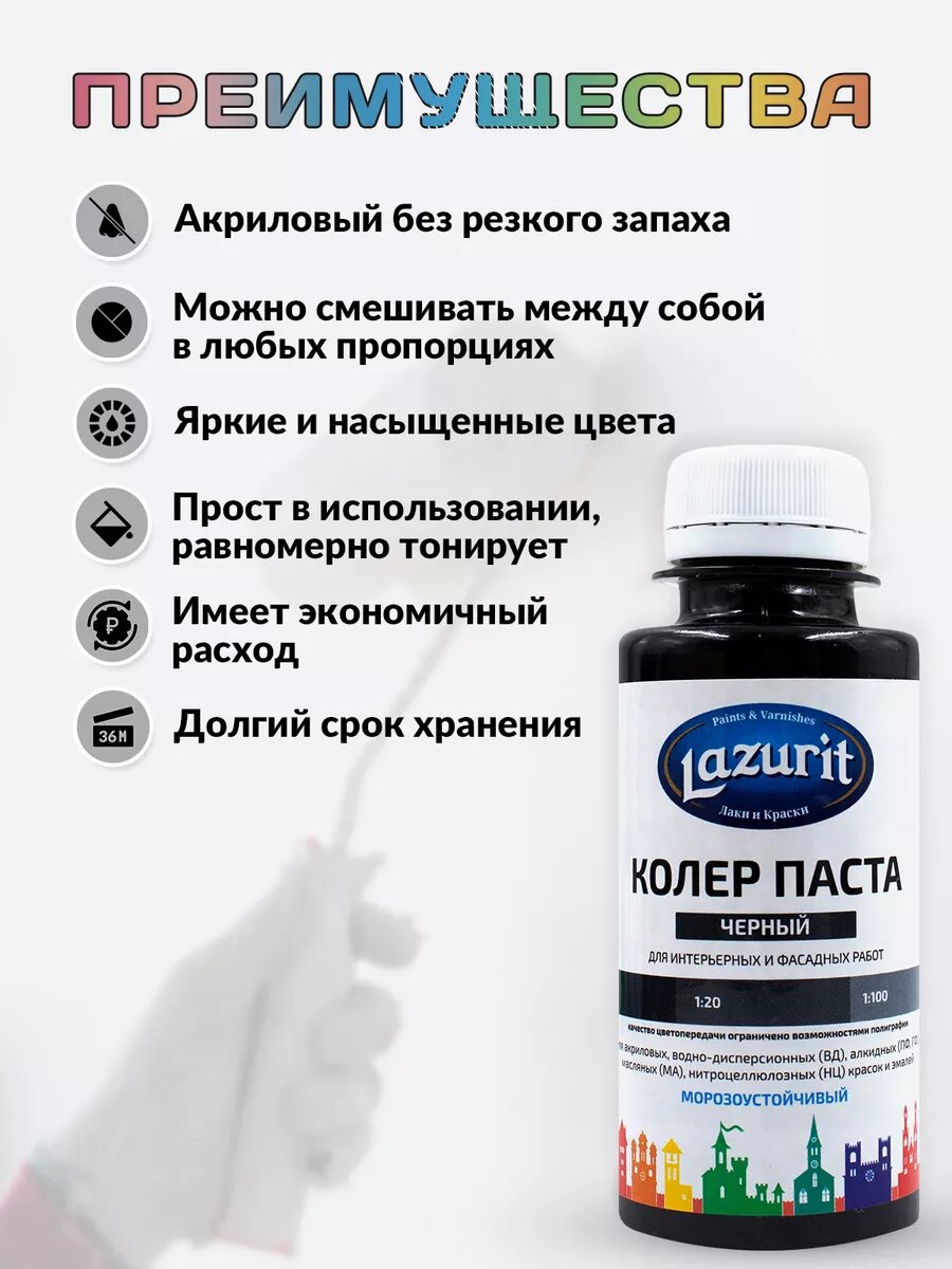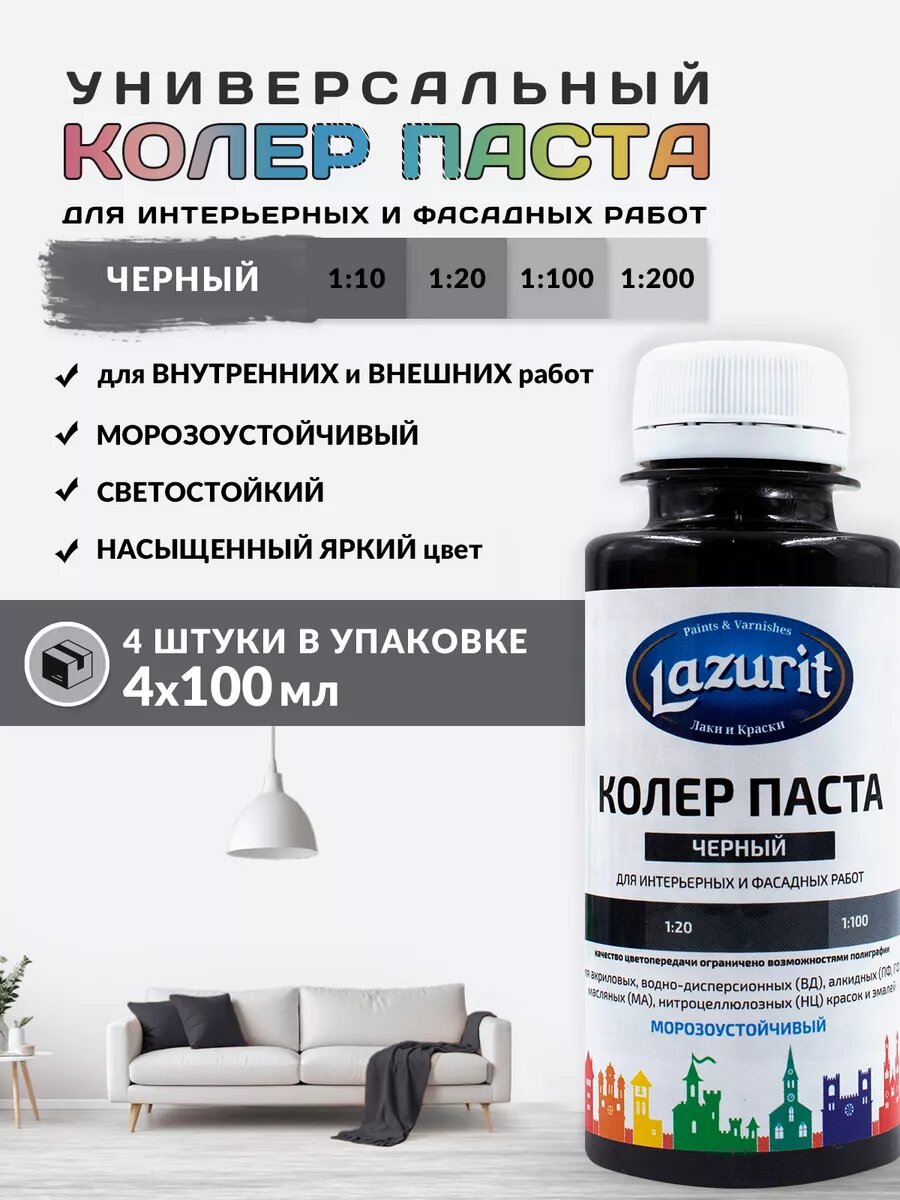 Колер-паста LAZURIT черный 100 мл/4шт интересное: