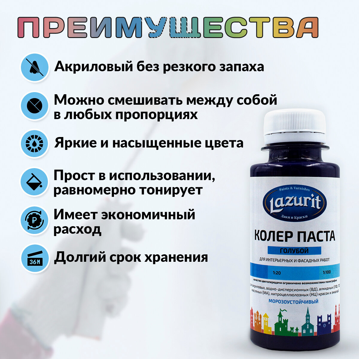 Колер-паста LAZURIT голубой 100 мл/1шт