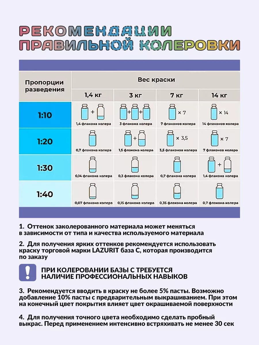 | Дополнительная информация | назначение: ремонт, декор, внутренние и фасадные работы, для потолка для стен, для дерева; для акриловой, алкидной, водно-дисперсионной, водно-эмульсионной, латексной красок, для затирок, для эмали; основа красик: водная; тип помещения: с повышенной влажностью, с умеренной влажностью, сухое; состав: пигменты, функциональные добавки, консерванты вода |