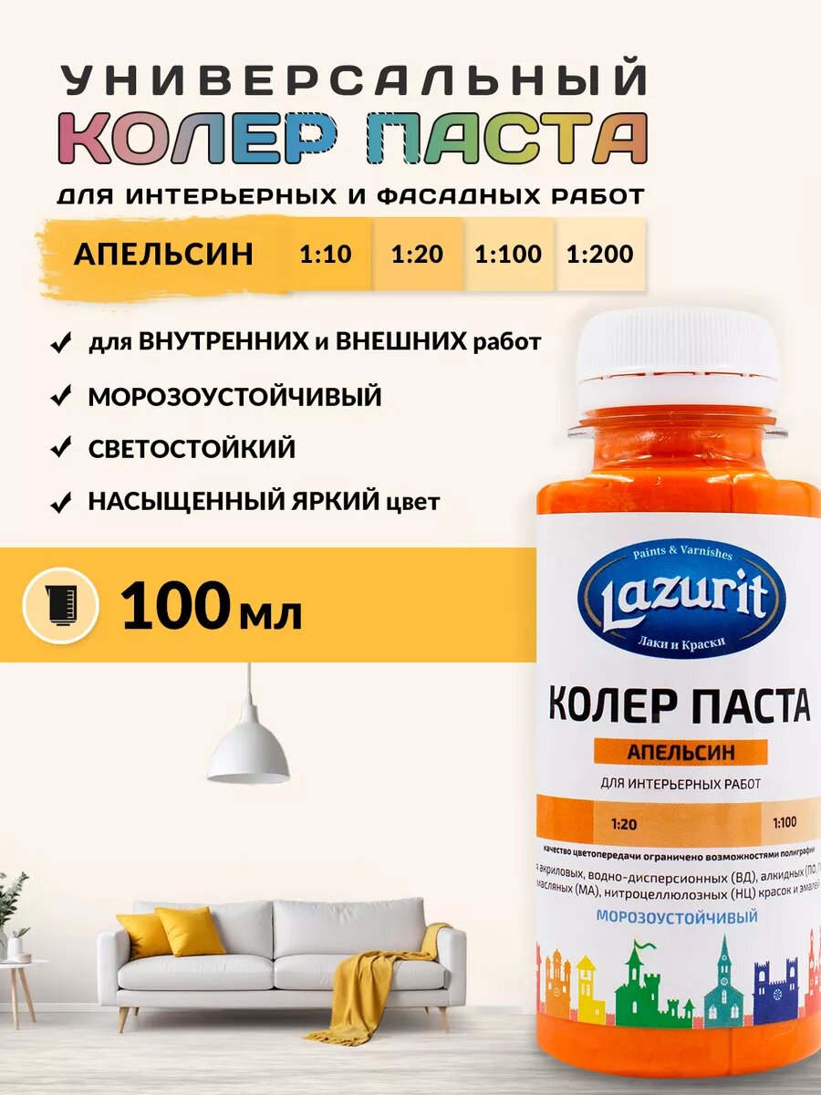 Купить Колер-паста LAZURIT апельсин 100 мл/1шт